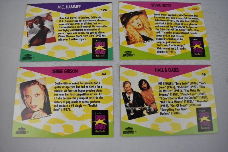 8 Collectible Musicians Cards, Cards Printed 1990s: Beatles, Debbie Gibson, MC Hammer, and More