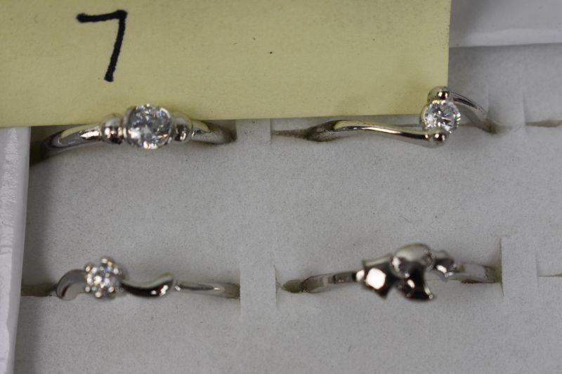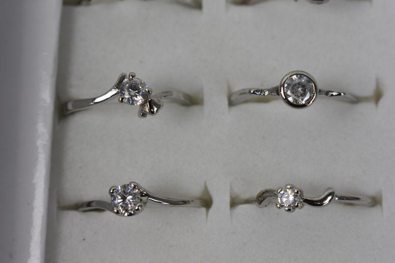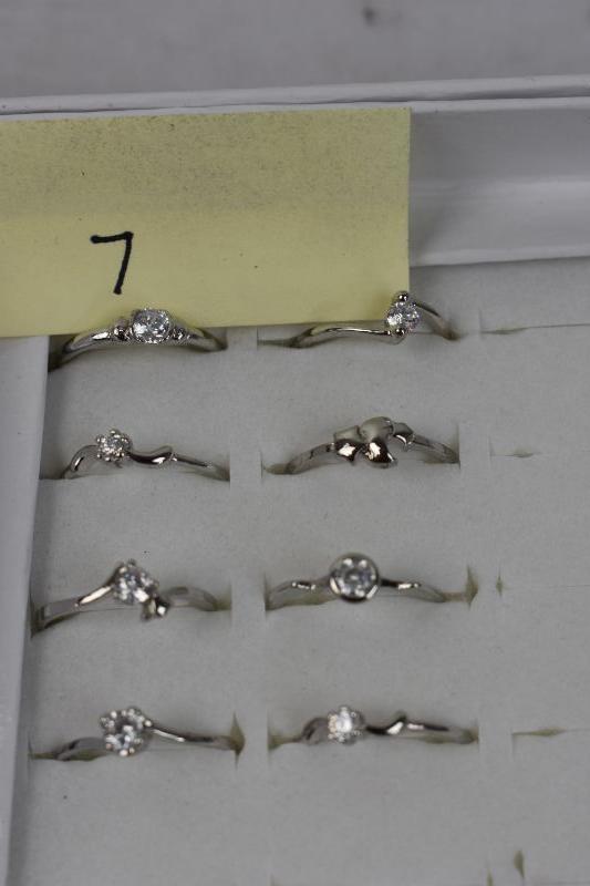 8 Costume Jewelry Silver Tone & Clear Stone Rings, Size 7 - New