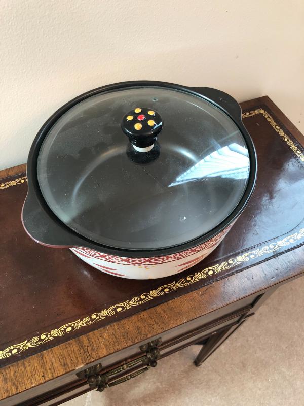 In excellent condition, clean never used. Ceramic, Teflon coated.