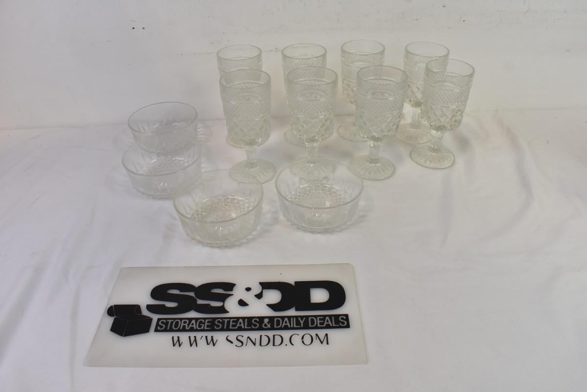 8 Crystal Glasses and 4 Trinket Bowls