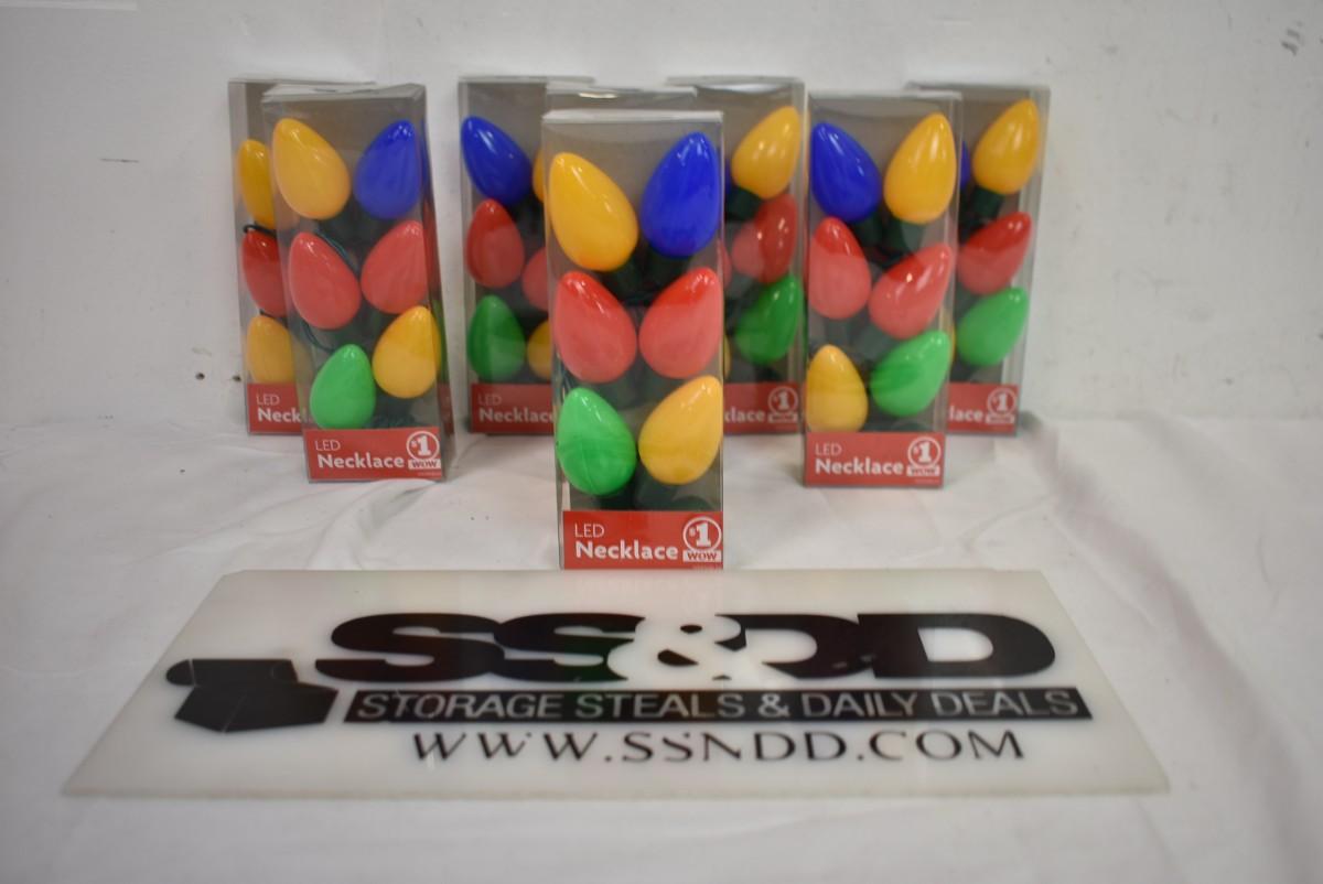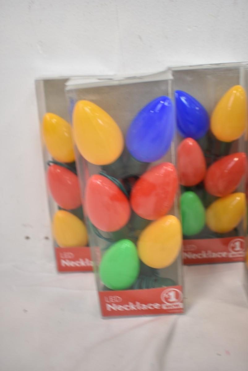8 Ct LED Christmas Light Bulb Plastic Necklaces, Batteries Included - New