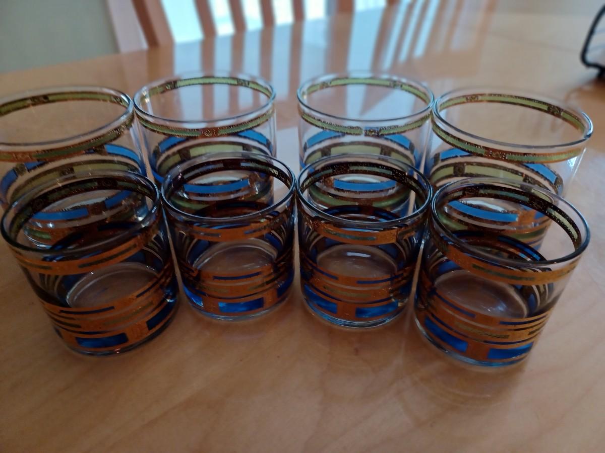 8 Culver Blue Empress Whiskey Glasses
