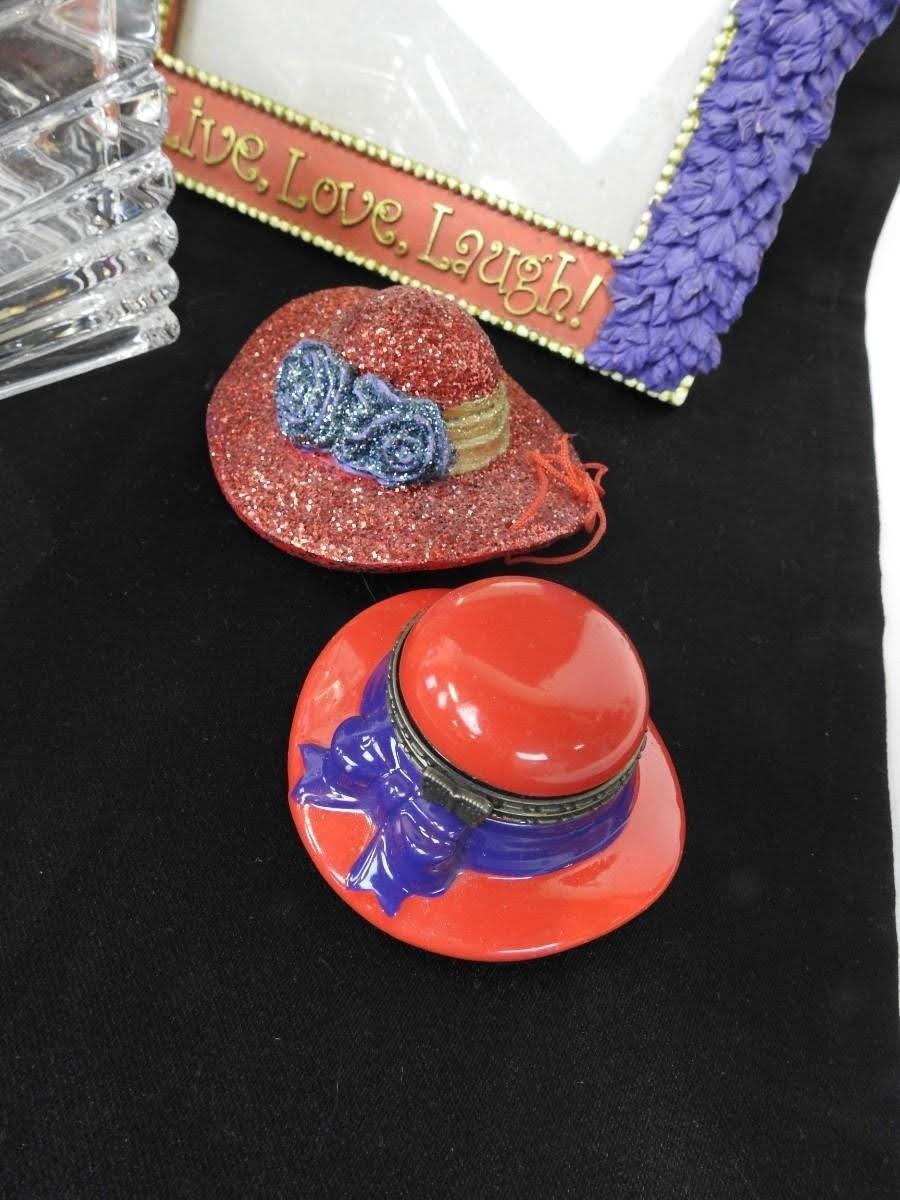 8 Decorative Ceramics: Elephant, Hats, Glass Staircase Jar, Live, Love Laugh, Pin