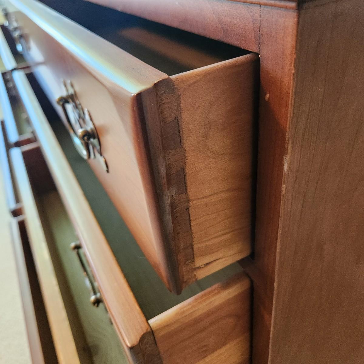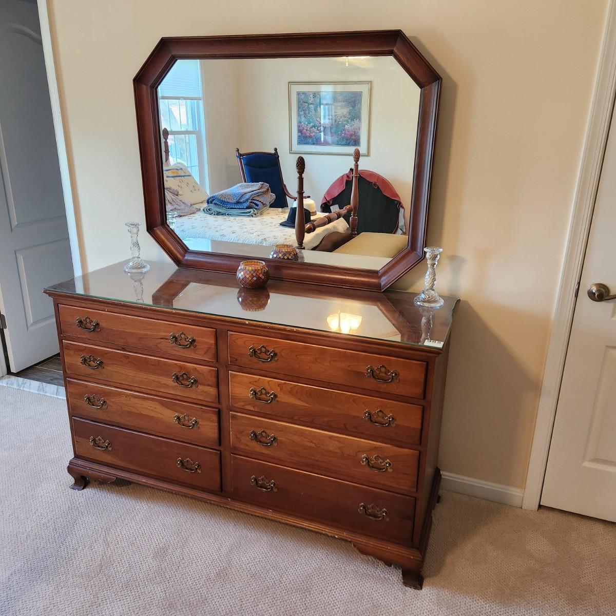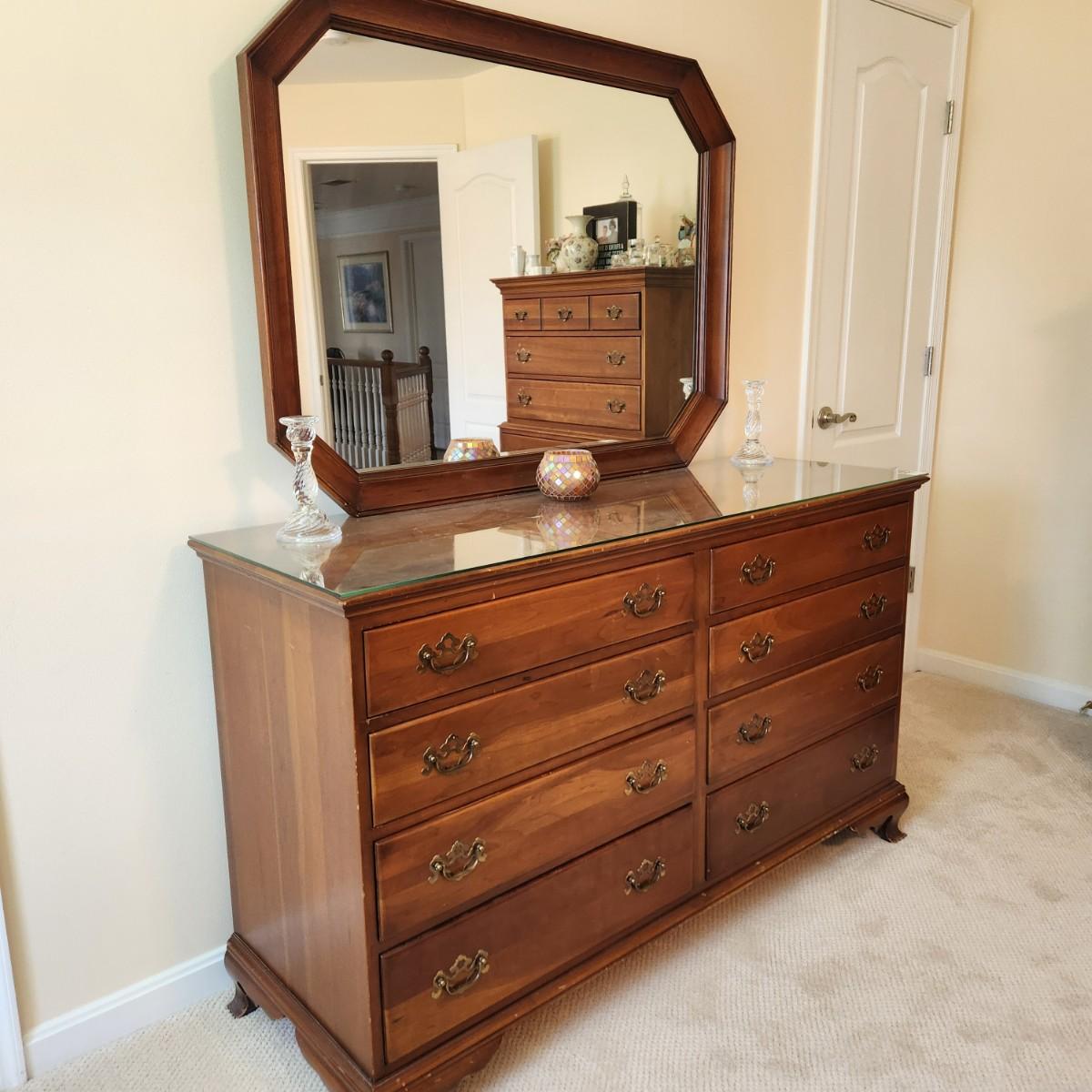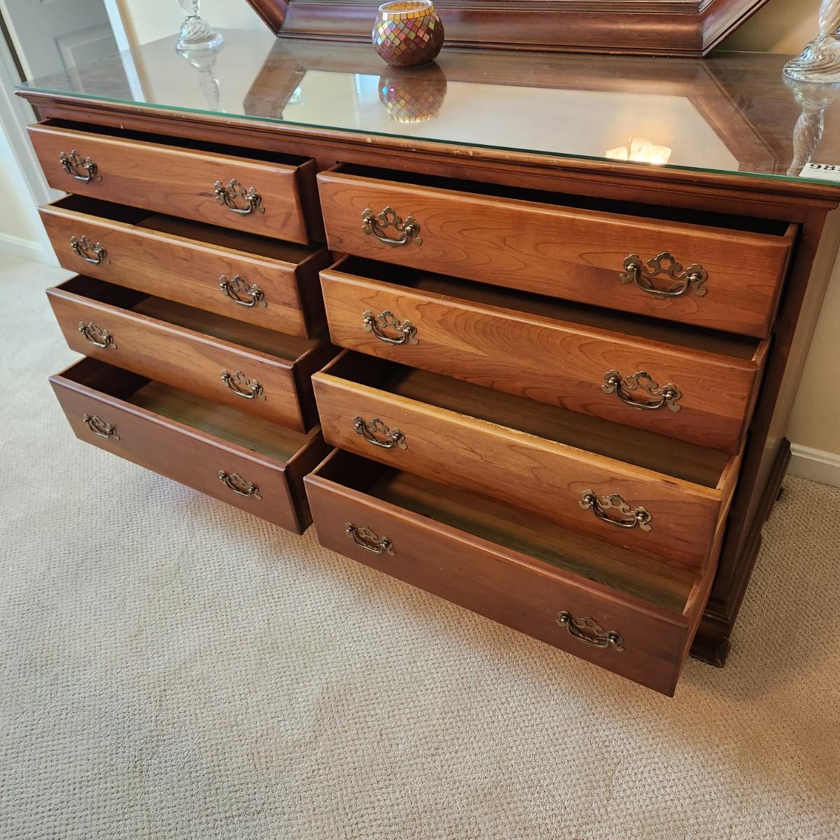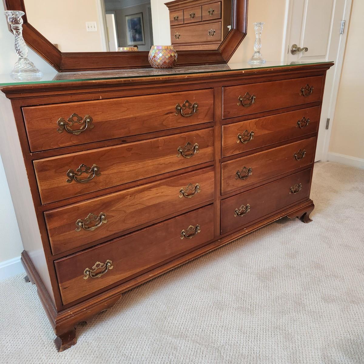 8 Drawer Solid Maple Wood Lowboy Dresser Chest w Mirror Glass Top
