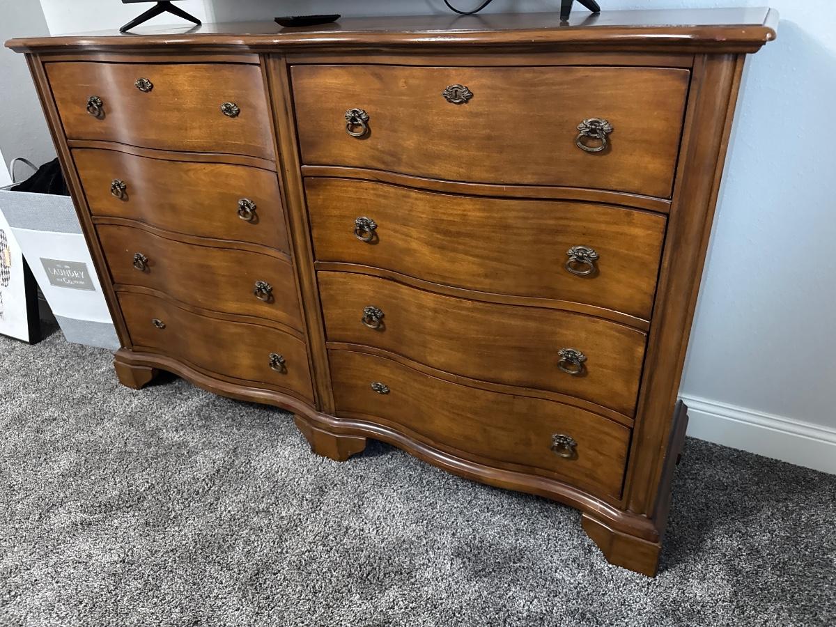 8 drawer curved wooden dresser