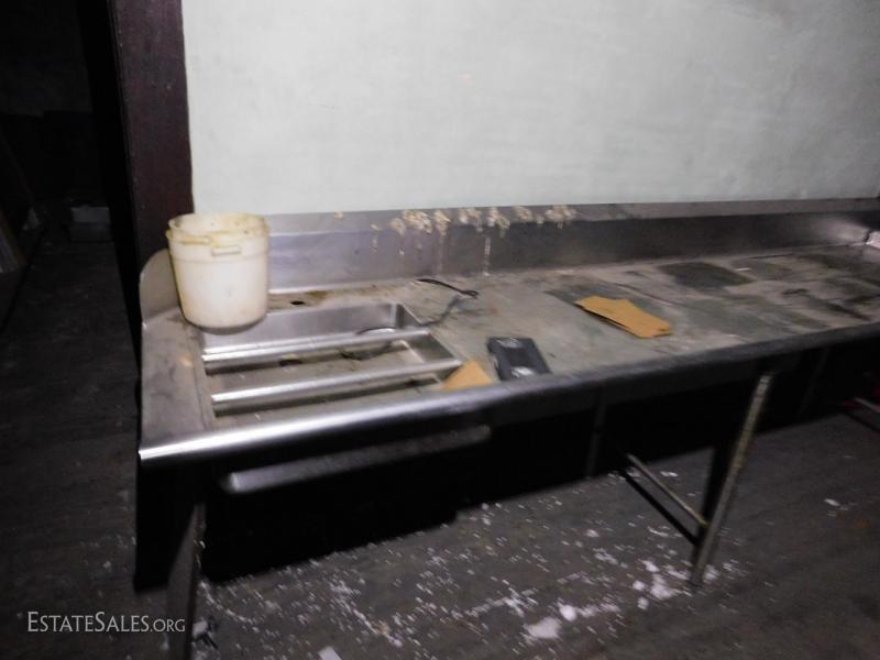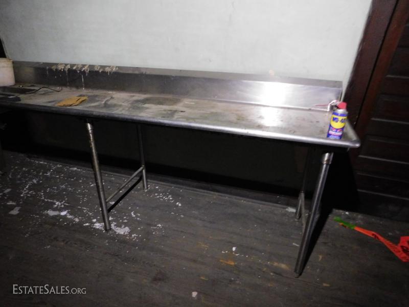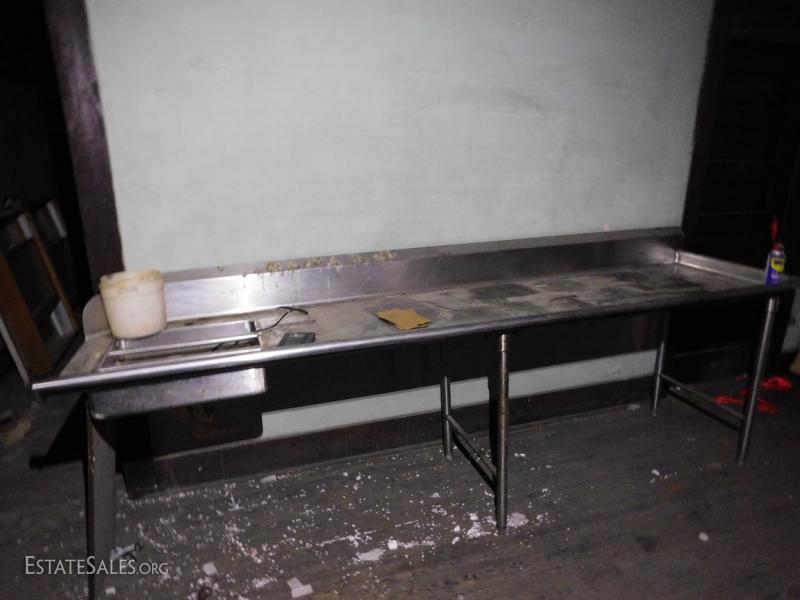 8' Dsih Pit NSF Stainless Steel Work Table and Drain Sink is sturdy. Just needs cleaning.