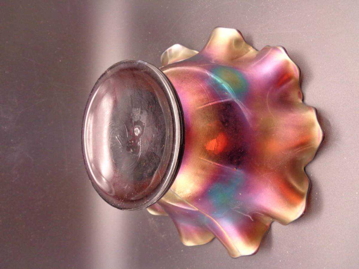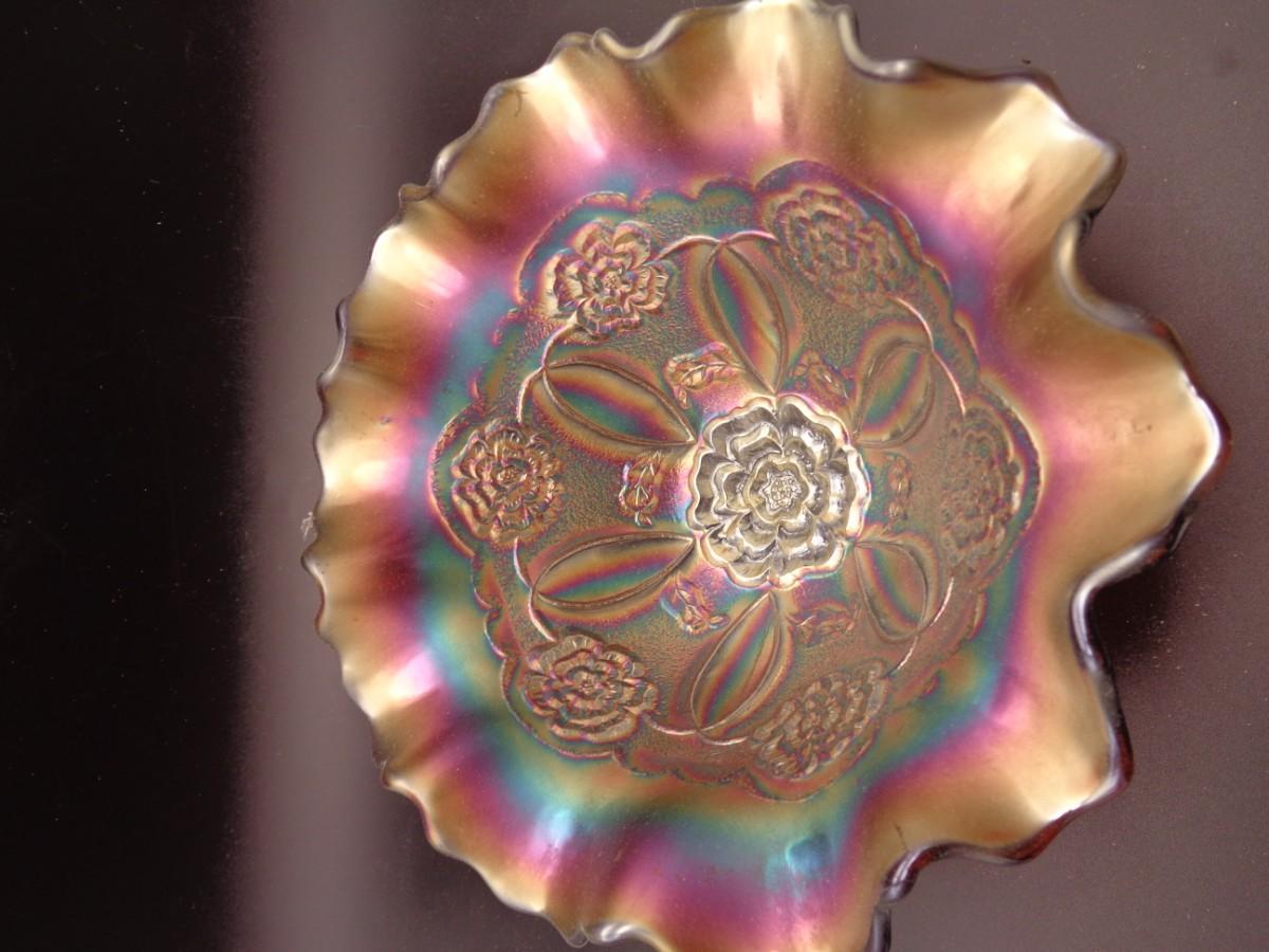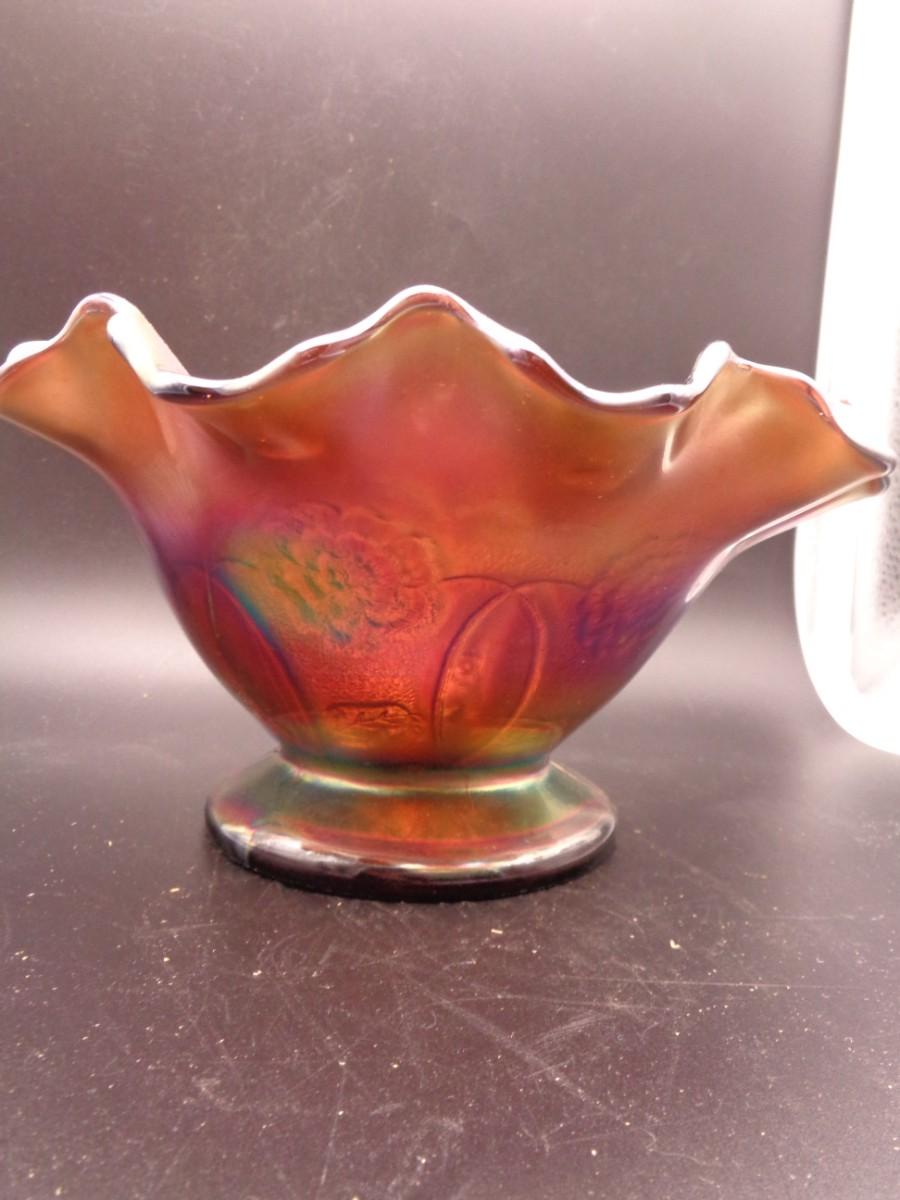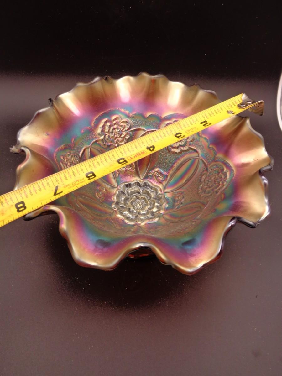 8" Dunag Amethyst Carnival "Double Stem Rose" Footed Ruffled Bowl #84