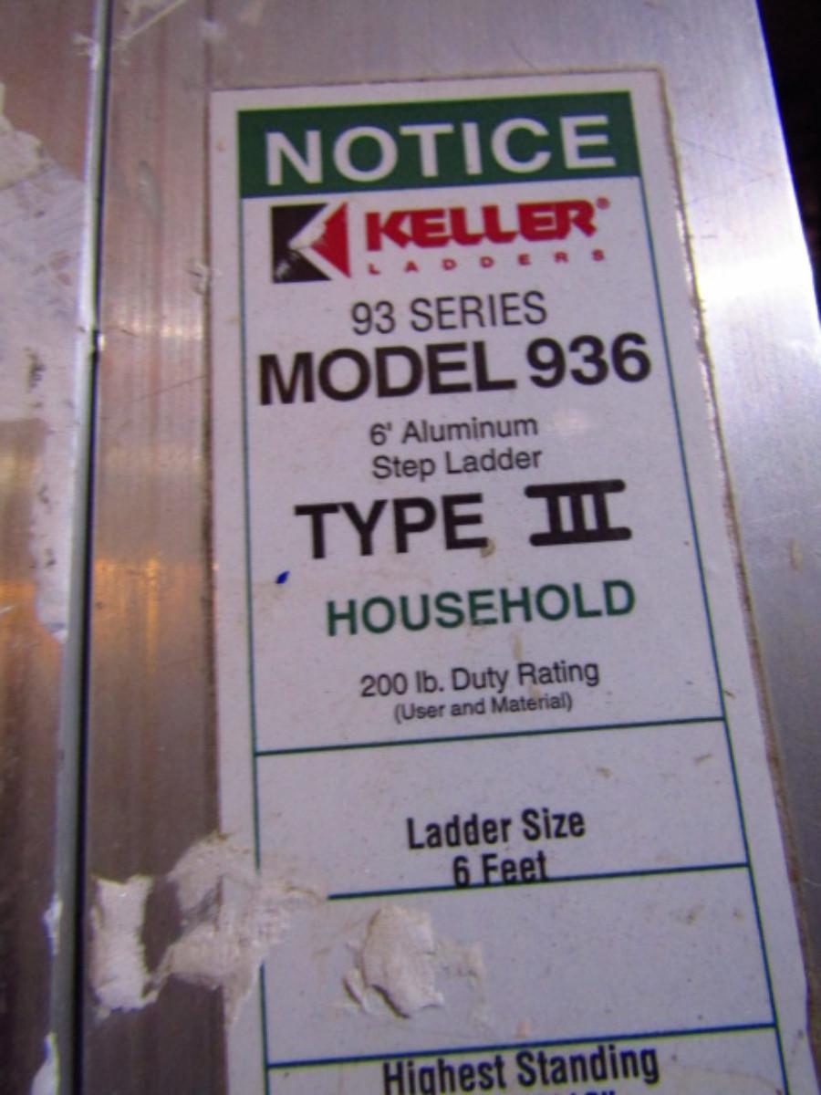 6 Foot Aluminum Ladder by Keller- 200 lb Duty Rating (G)