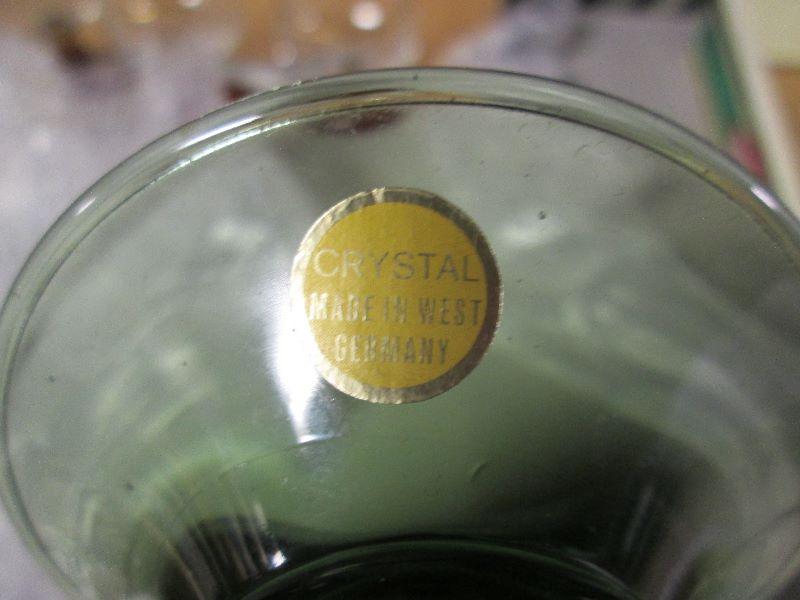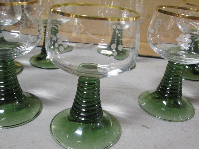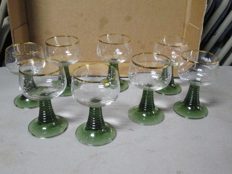 8 German Roemer Wine Crystal Glasses Green Beehive Stem