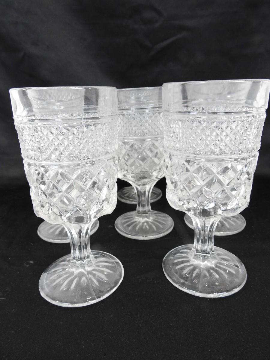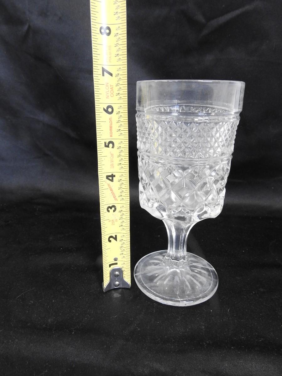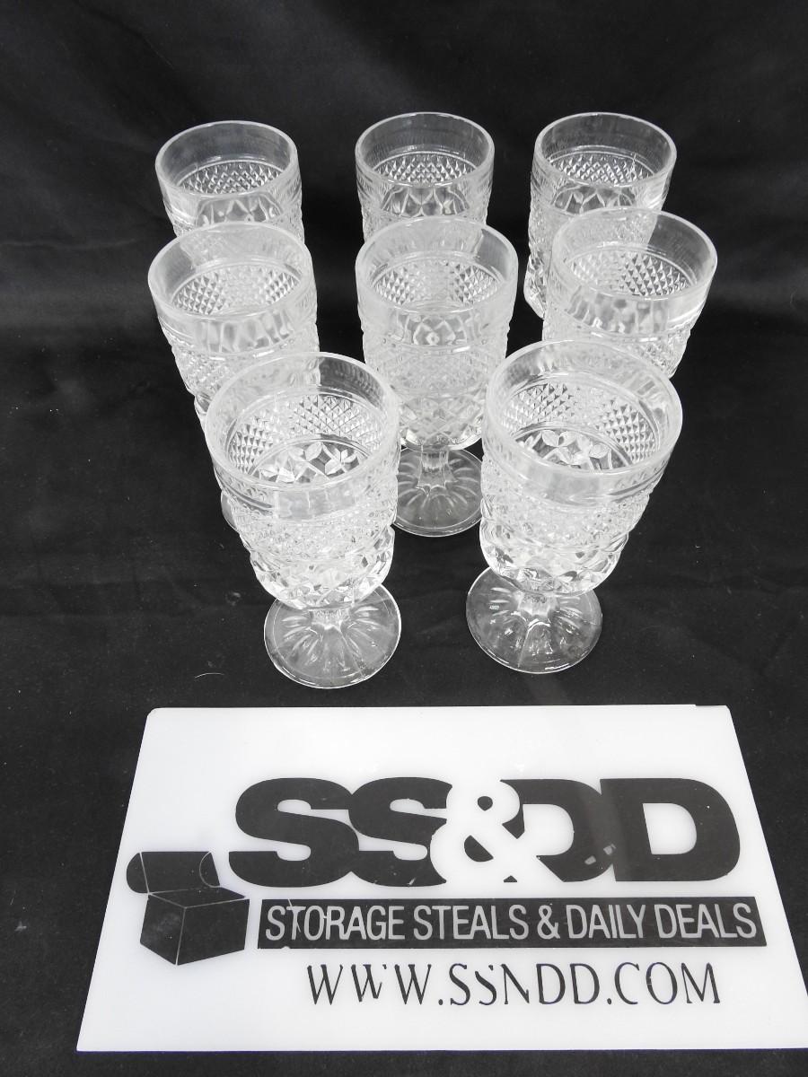 8 Goblet Glasses, Cut Glass, Clear, 6.5" Tall, Vintage