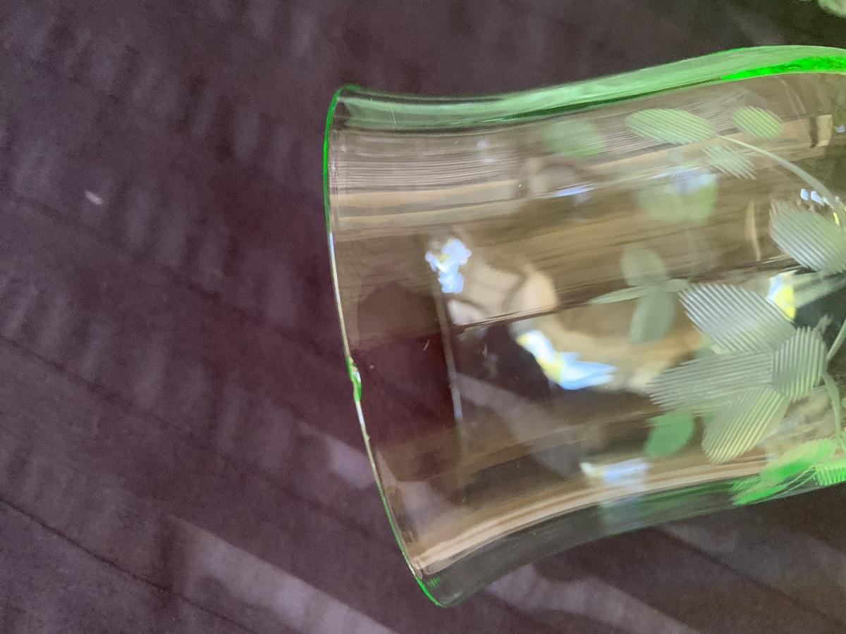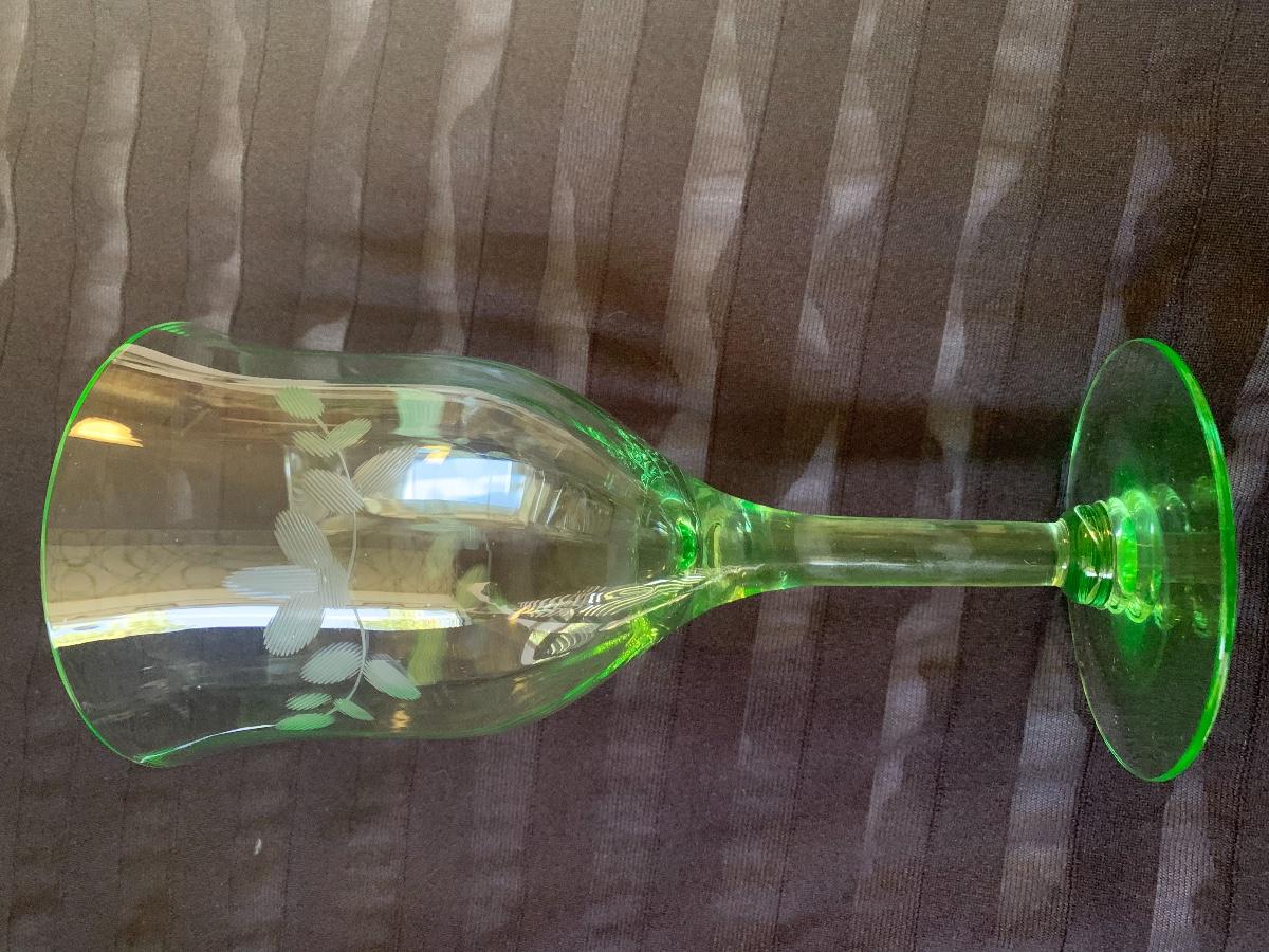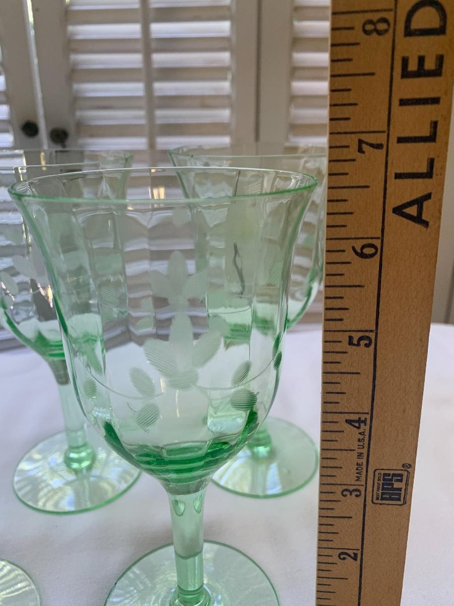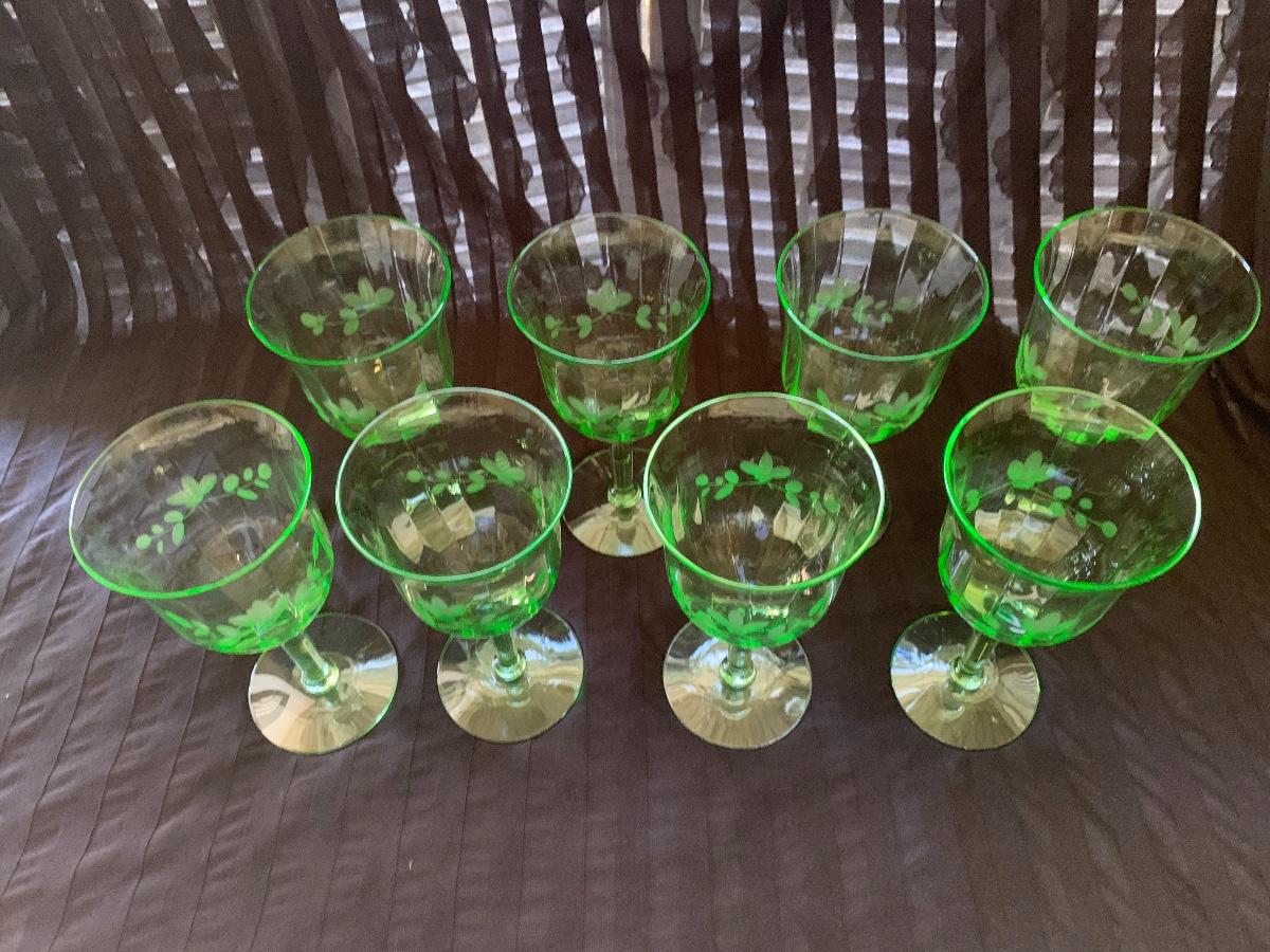 (8) Green Etched Crystal Wine Glasses- Beautiful
