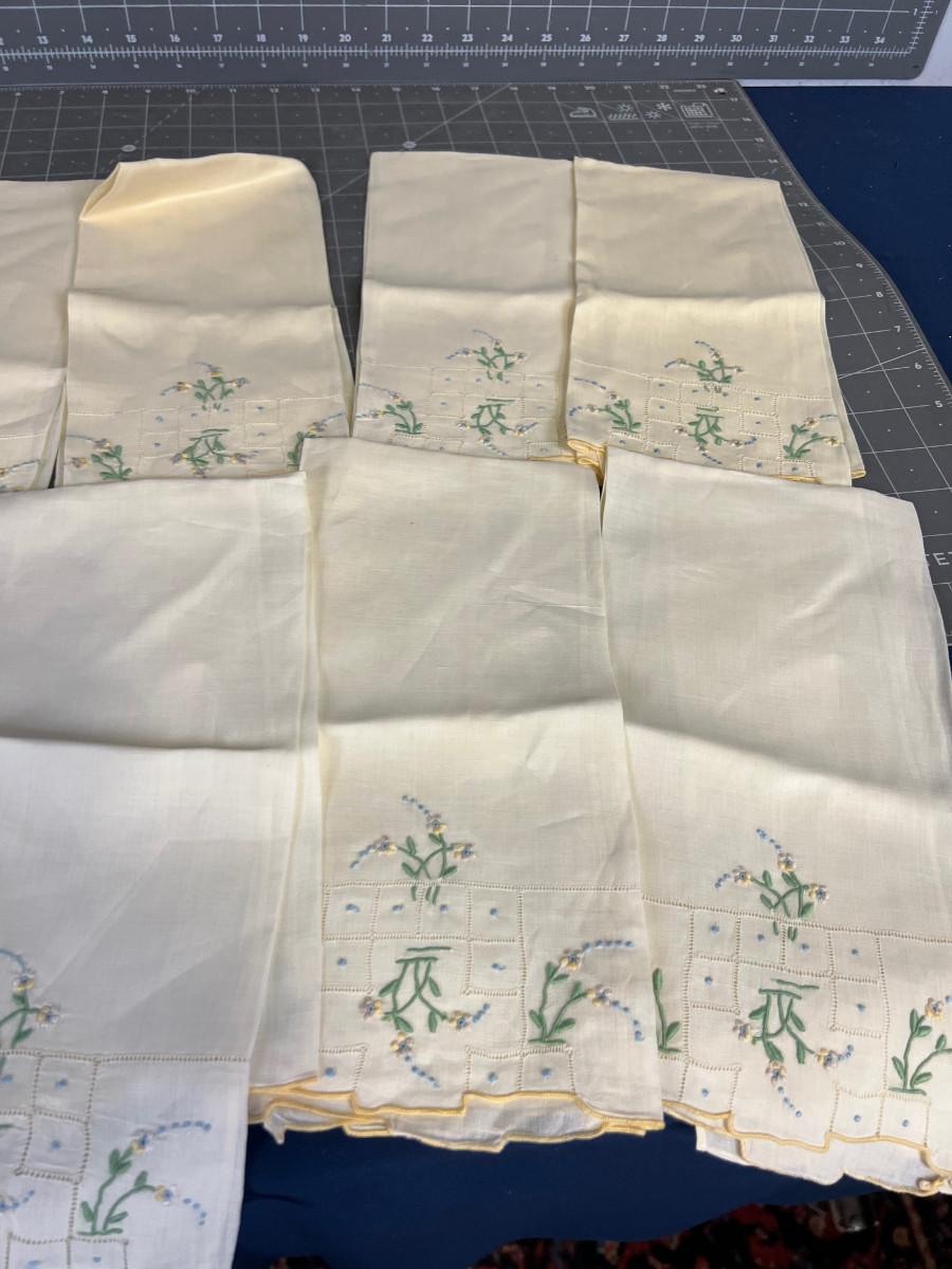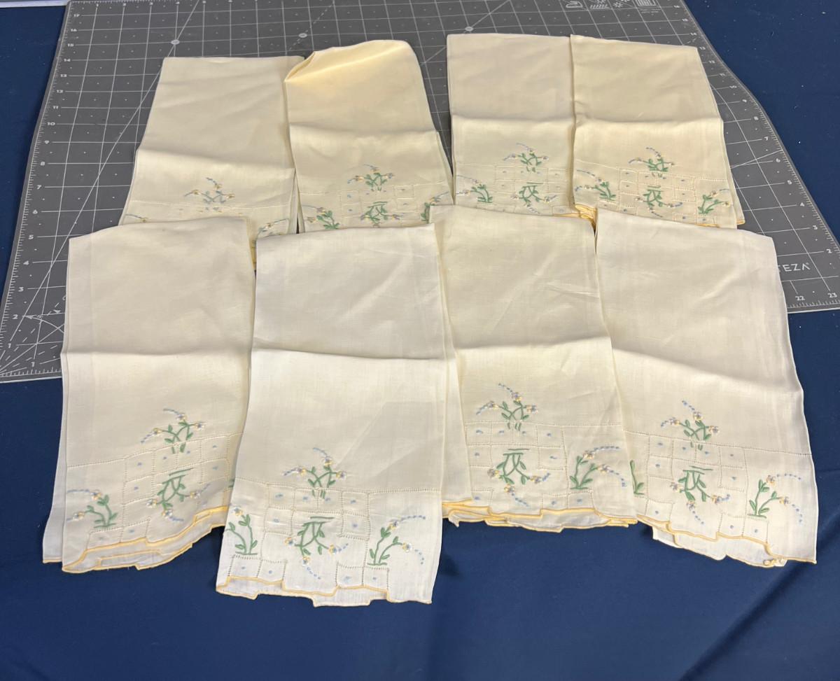 8 Hand Embroidered Napkins, Antique