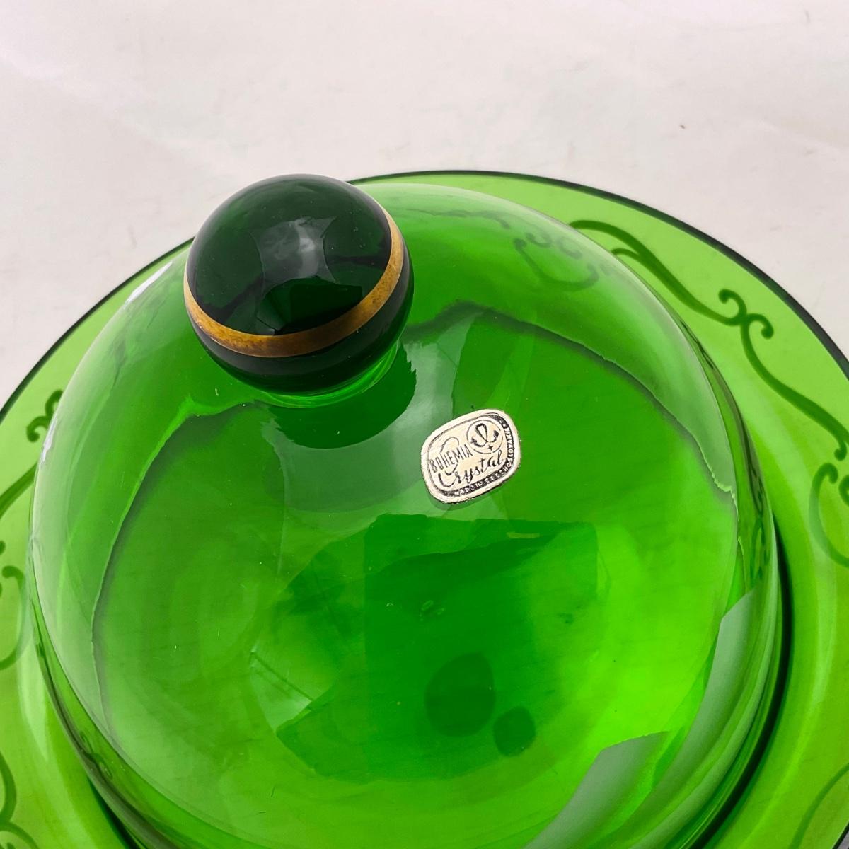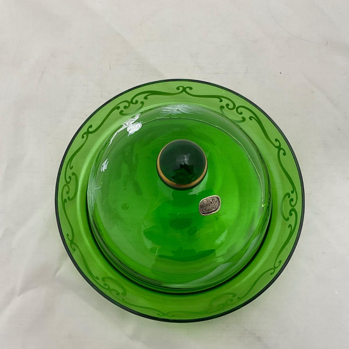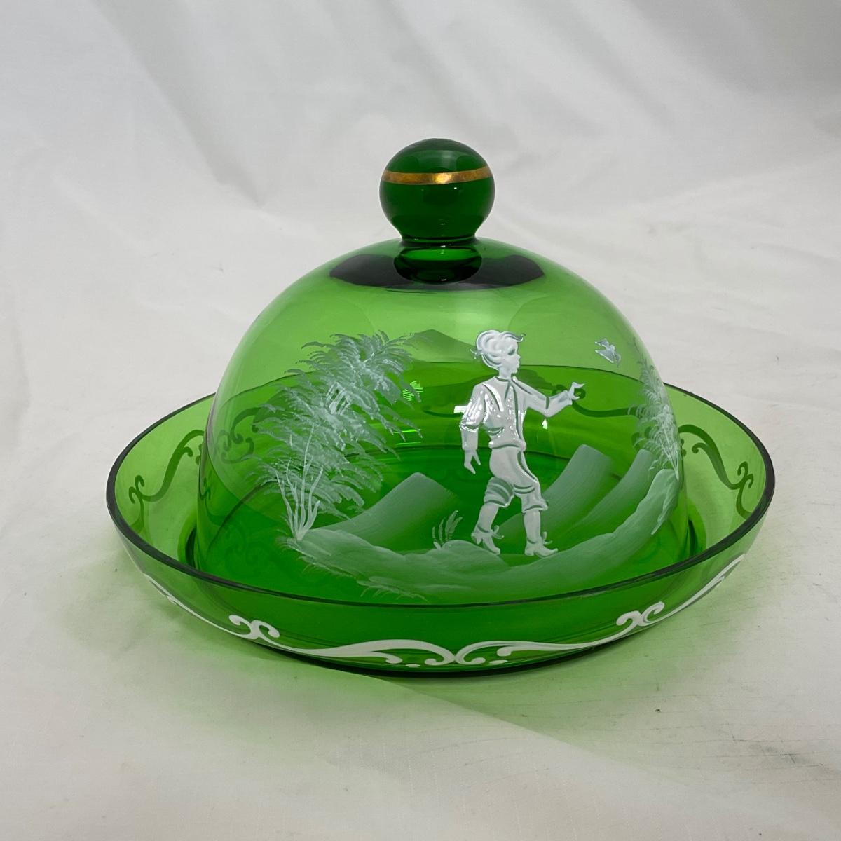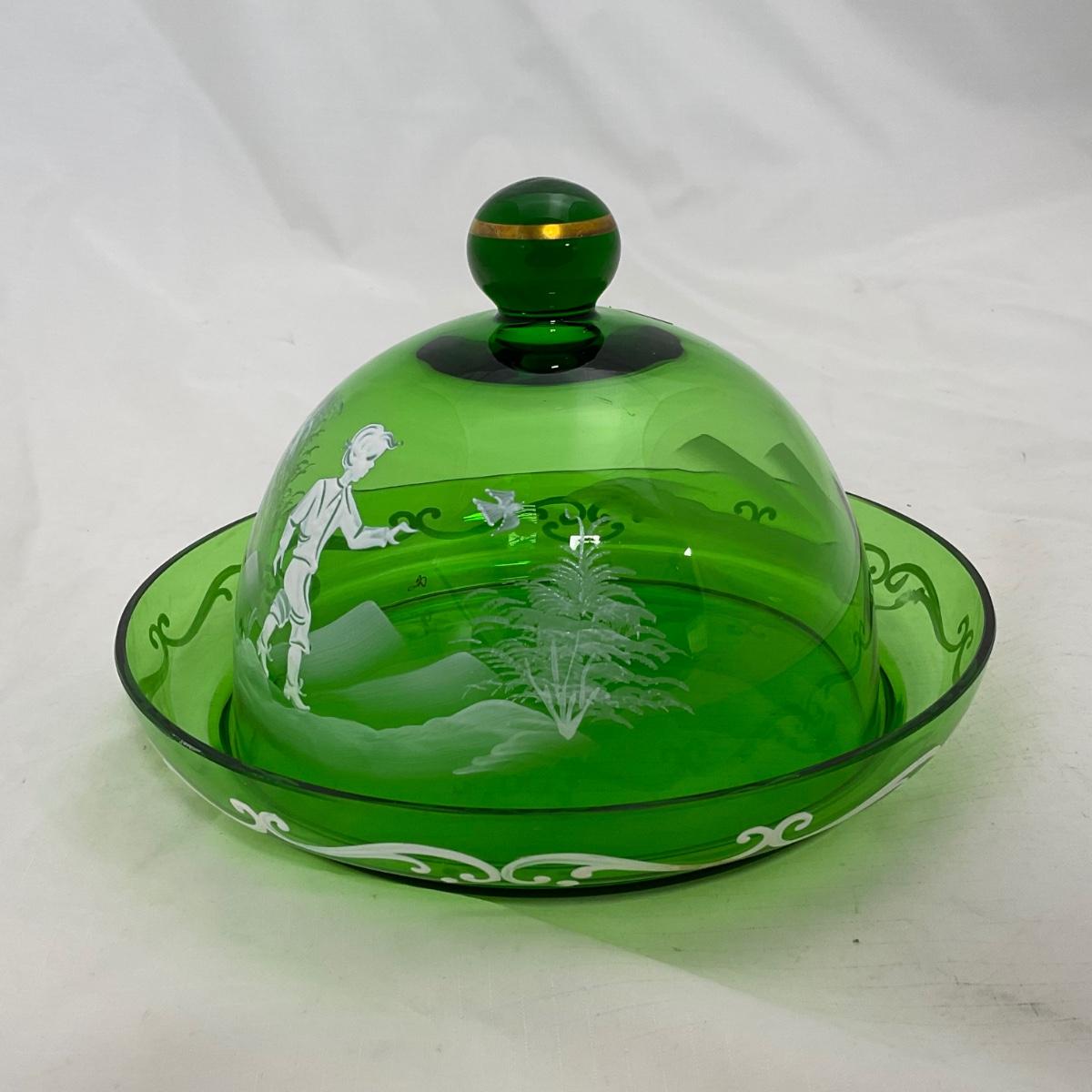 -8- Hand Painted Green | Mary Gregory Covered Butter Dish