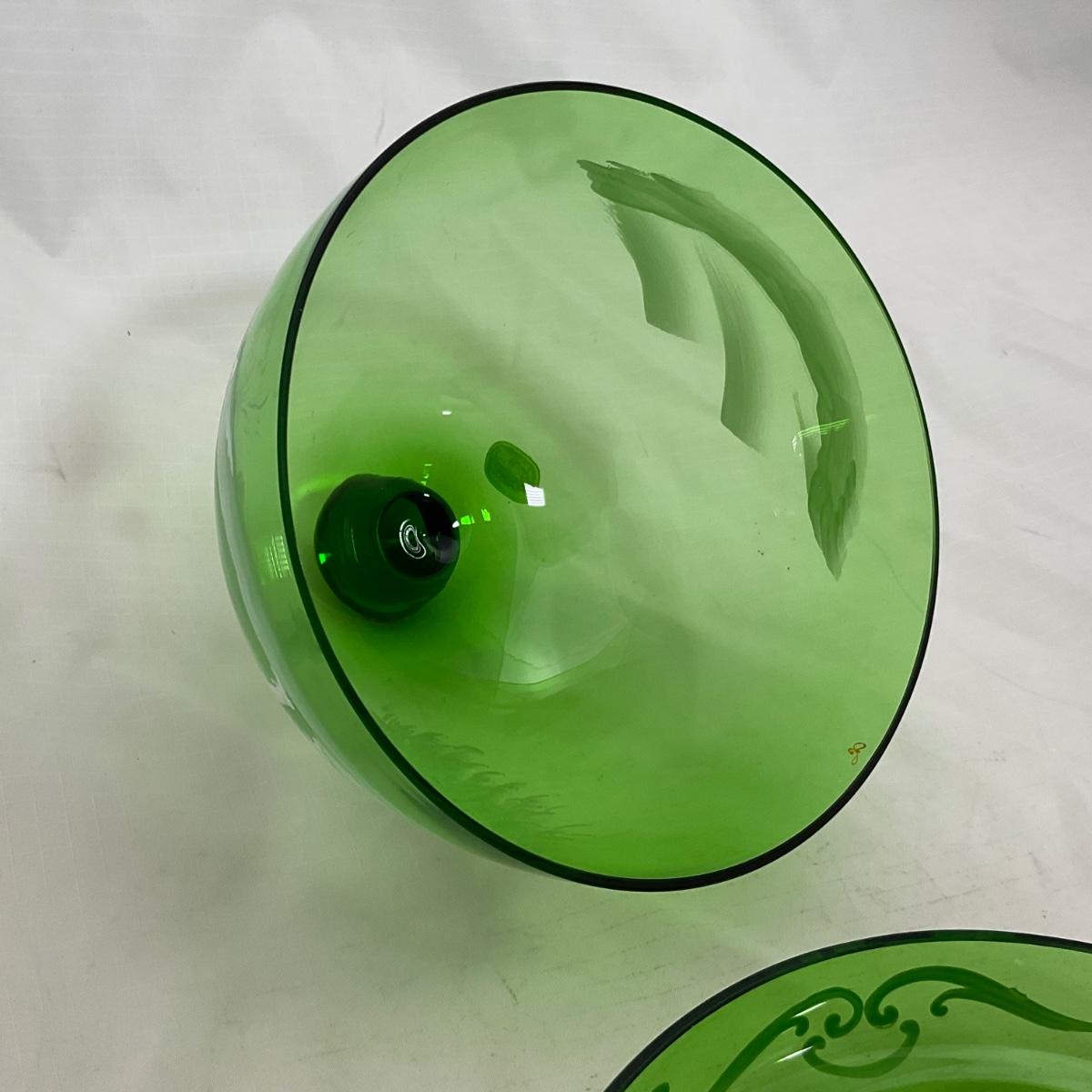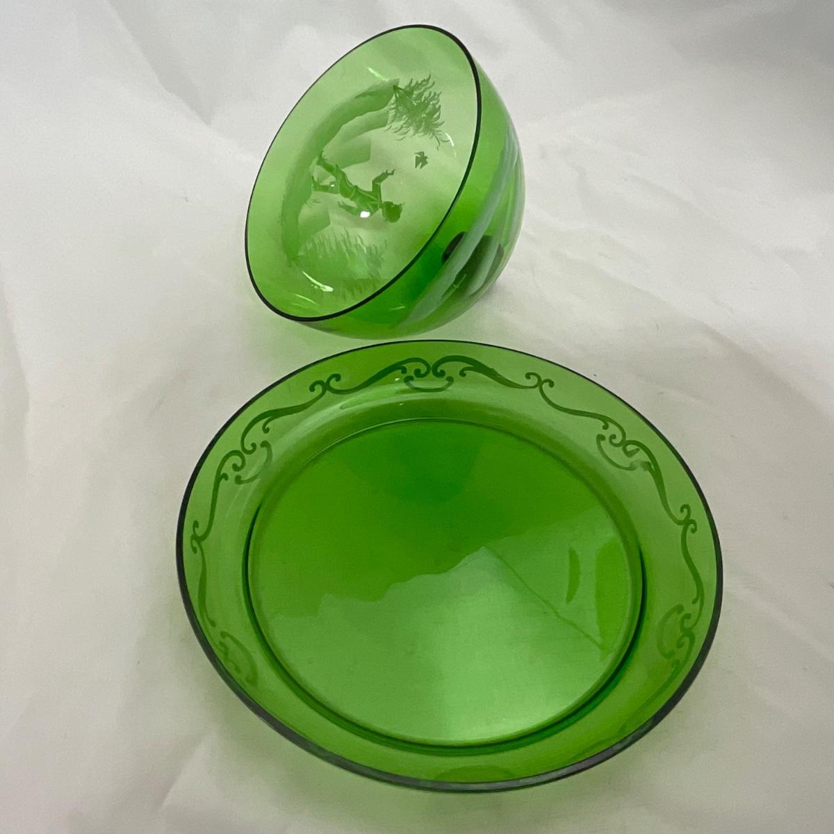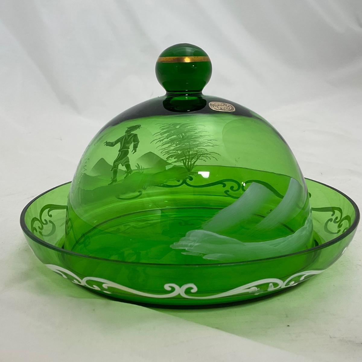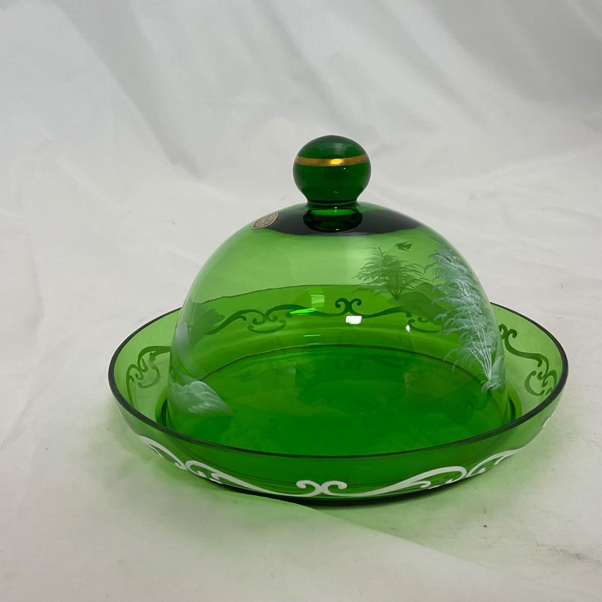 One green colored hand painted Mary Gregory Butter dish in amazing condition. Marked with a Bohemia/ Czechoslovakia sticker. Top and bottom piece are also signed. Please see photos for details and condition. ::: Shipping is available on this lot. If you require shipping you must let us know at the close of the auction. We will coordinate with you after the item has been won. Shipping fees will include insurance up to or exceeding the value of all items being mailed. If you have any questions regarding this lot please contact the auctioneer either via this website, by direct email or by phone. PICK UP TIMES and other important information can be found in the TERMS and DESCRIPTION of the auction. Please take a look for pertinent information. Thanks!