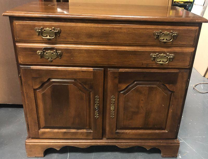 Great condition, solid maple c.1969, 35"x17"x34" tall, missing one knob on cabinet door.