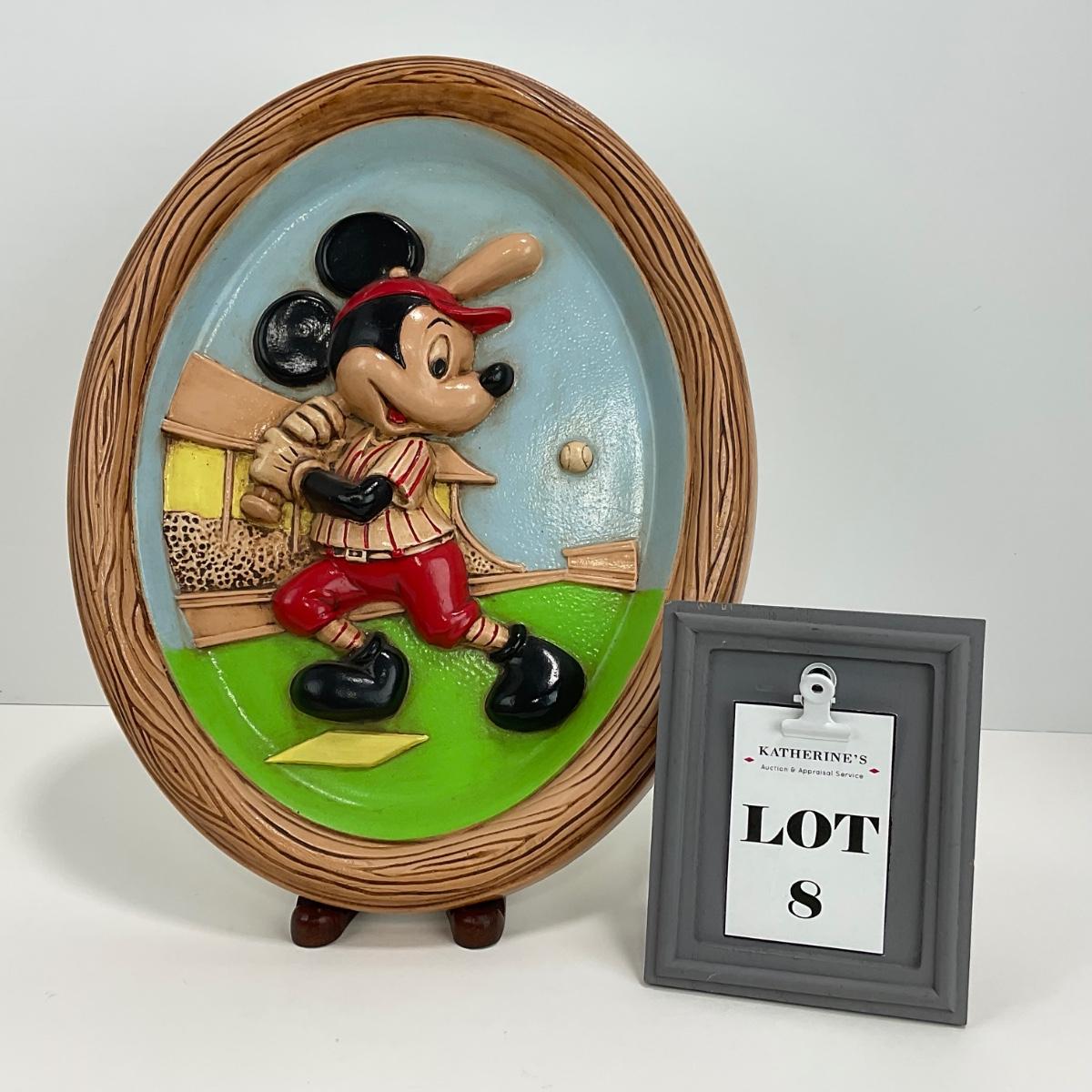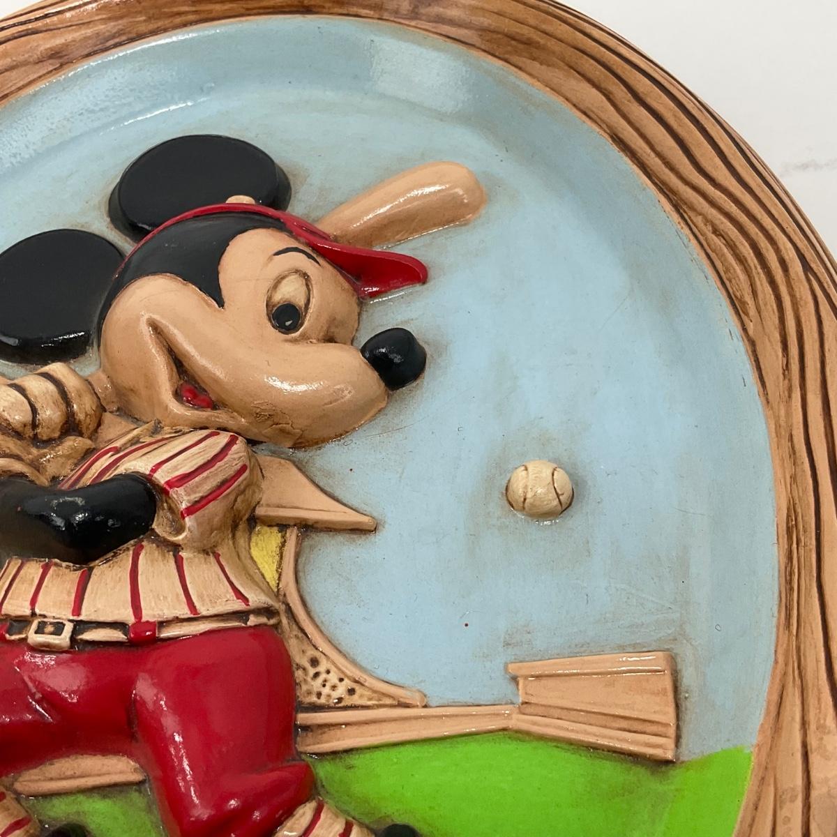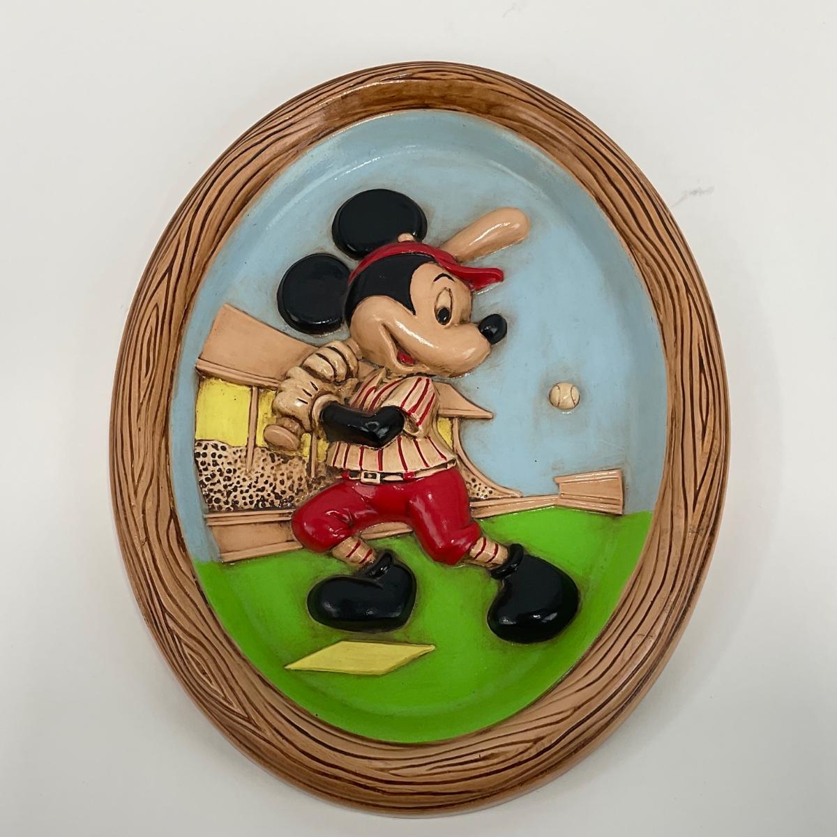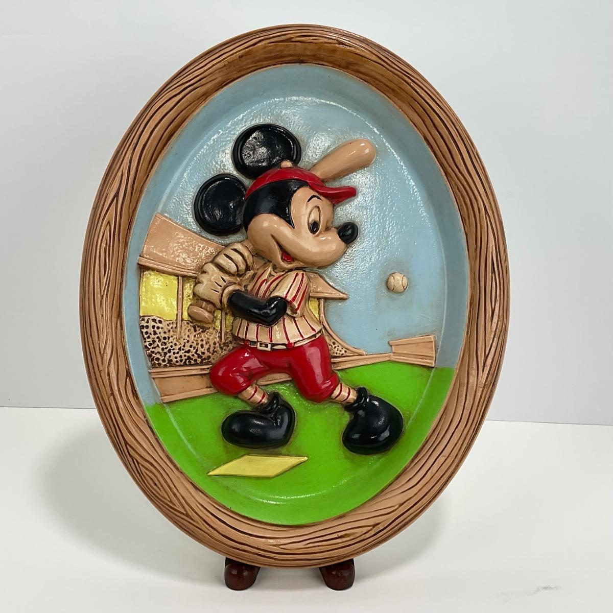 -8- HOME | Vintage Disney Mickey Mouse Playing Baseball | Wall Plaque Hand Painted