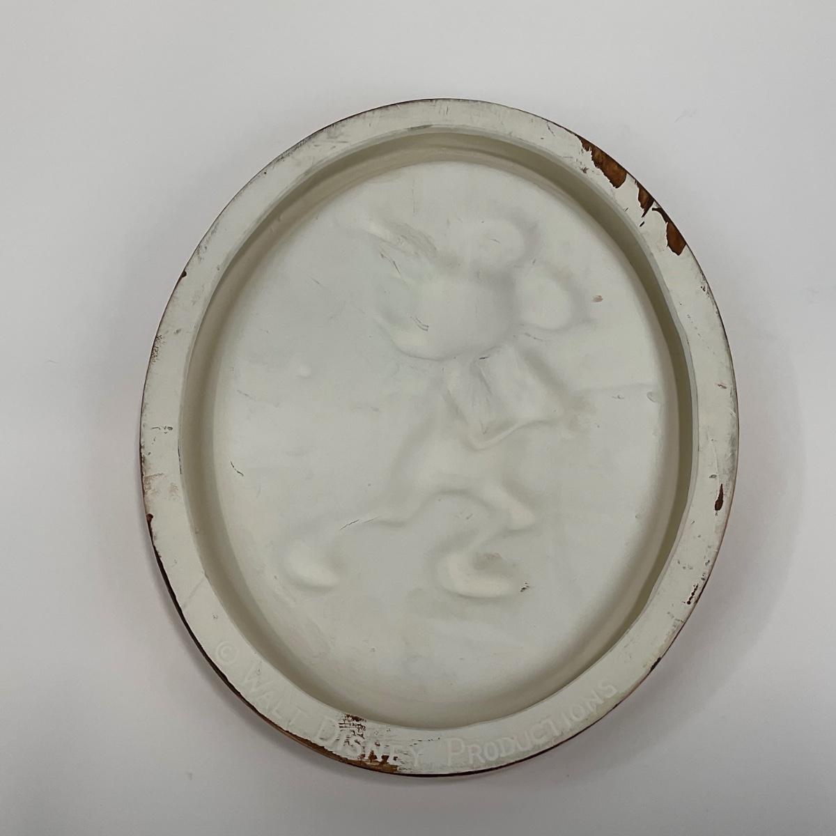 One vintage Walt Disney Productions Plaster Cast, hand painted wall hanging Mickey Mouse Baseball Batter. 12 1/4 inches by 9 3/4 inches. Does have a few minor scuffs and marks. Please see photos for details and condition. Any condition statement is given as a courtesy to a client, is an opinion, and should not be treated as a statement of fact. Reference to condition written, oral or within a condition report shall not be regarded as a full account of condition and may not include all defects, alterations, or restorations. Absence of a condition report does not imply a lot is flawless or lacking imperfections or damage. Katherine’s Auction & Appraisal Service shall have no responsibility for any error or omission. Returns shall not be accepted on the basis of condition. ::: Shipping is available on this lot. If you require shipping you must let us know at the close of the auction. We will coordinate with you after the item has been won. Shipping fees will include insurance up to or exceeding the value of all items being mailed. If you have any questions regarding this lot please contact the auctioneer either via this website, by direct email or by phone. PICK UP TIMES and other important information can be found in the TERMS and DESCRIPTION of the auction. Please take a look for pertinent information. Thanks!
