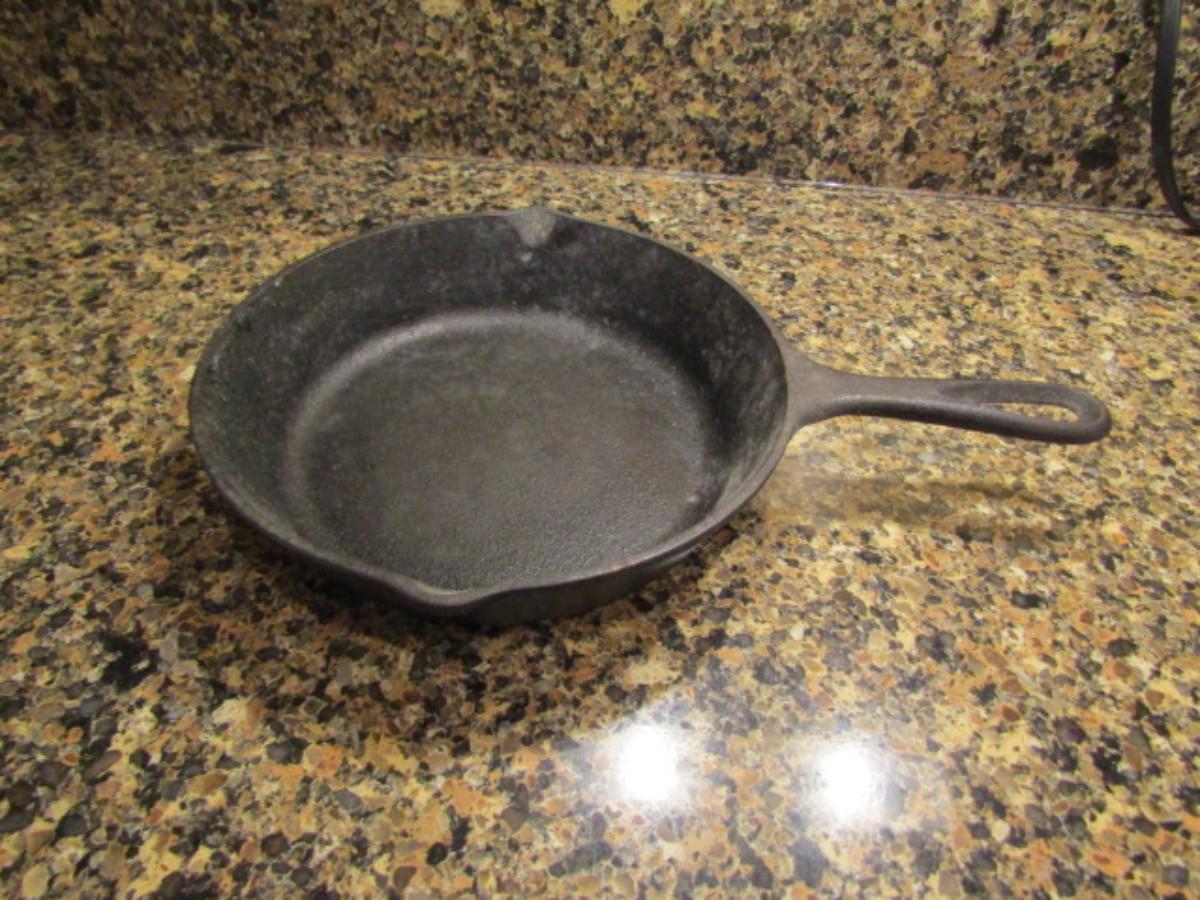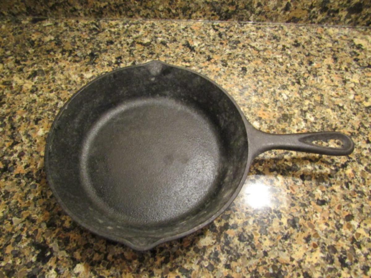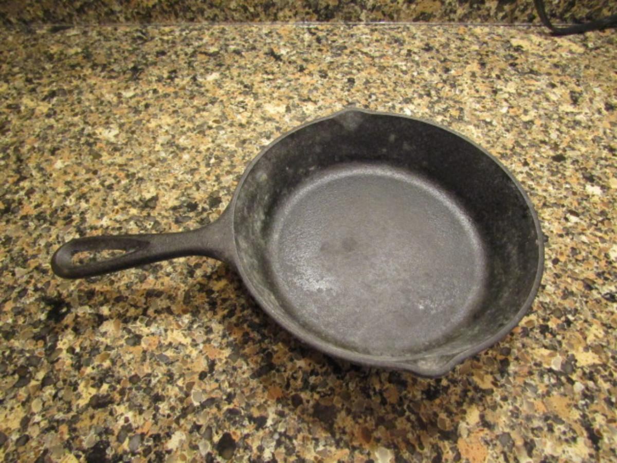 8 Inch Cast Iron Pan by Lodge. Needs to be cleaned.