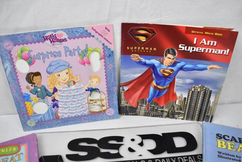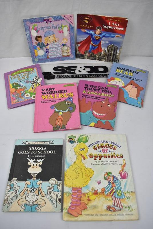 8 Kids Books: Surprise Party, Superman, Sweet Pickles (4), Morris Goes to School, & Sesame Street