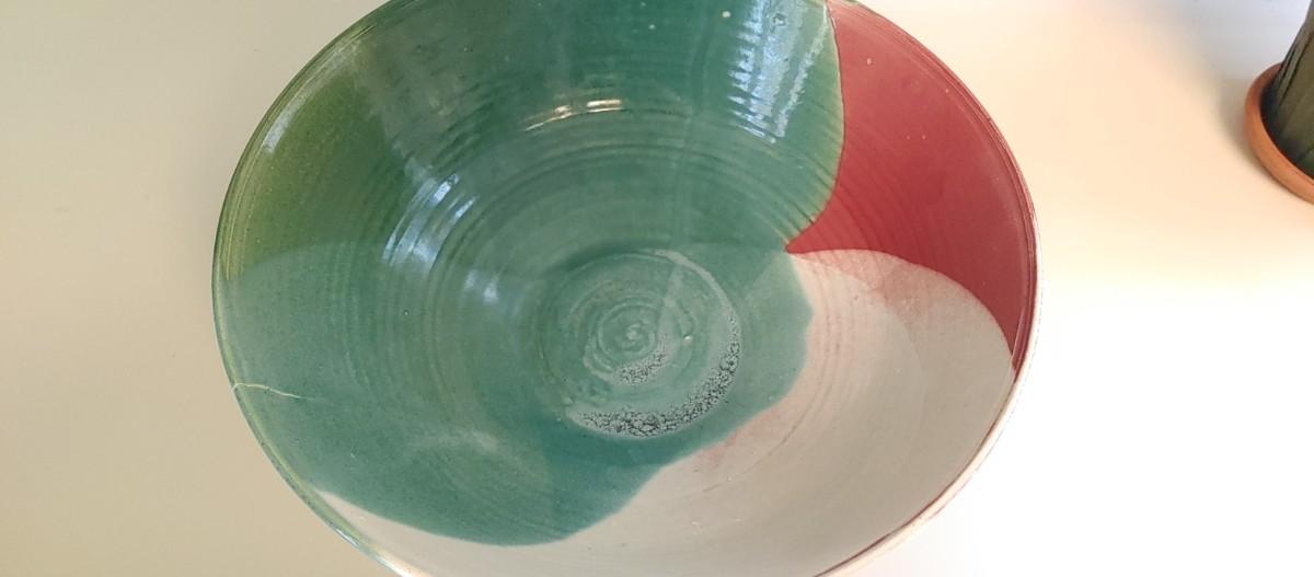 Beautiful vintage Sandra Miller Pottery phone great designs and colors 12in diameter by 4.5 in tall.