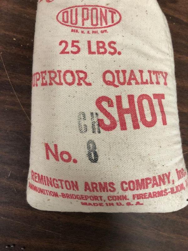 Partial open bag of #8 shot approximately 18 pounds. Ships $15.95 anywhere in the US.