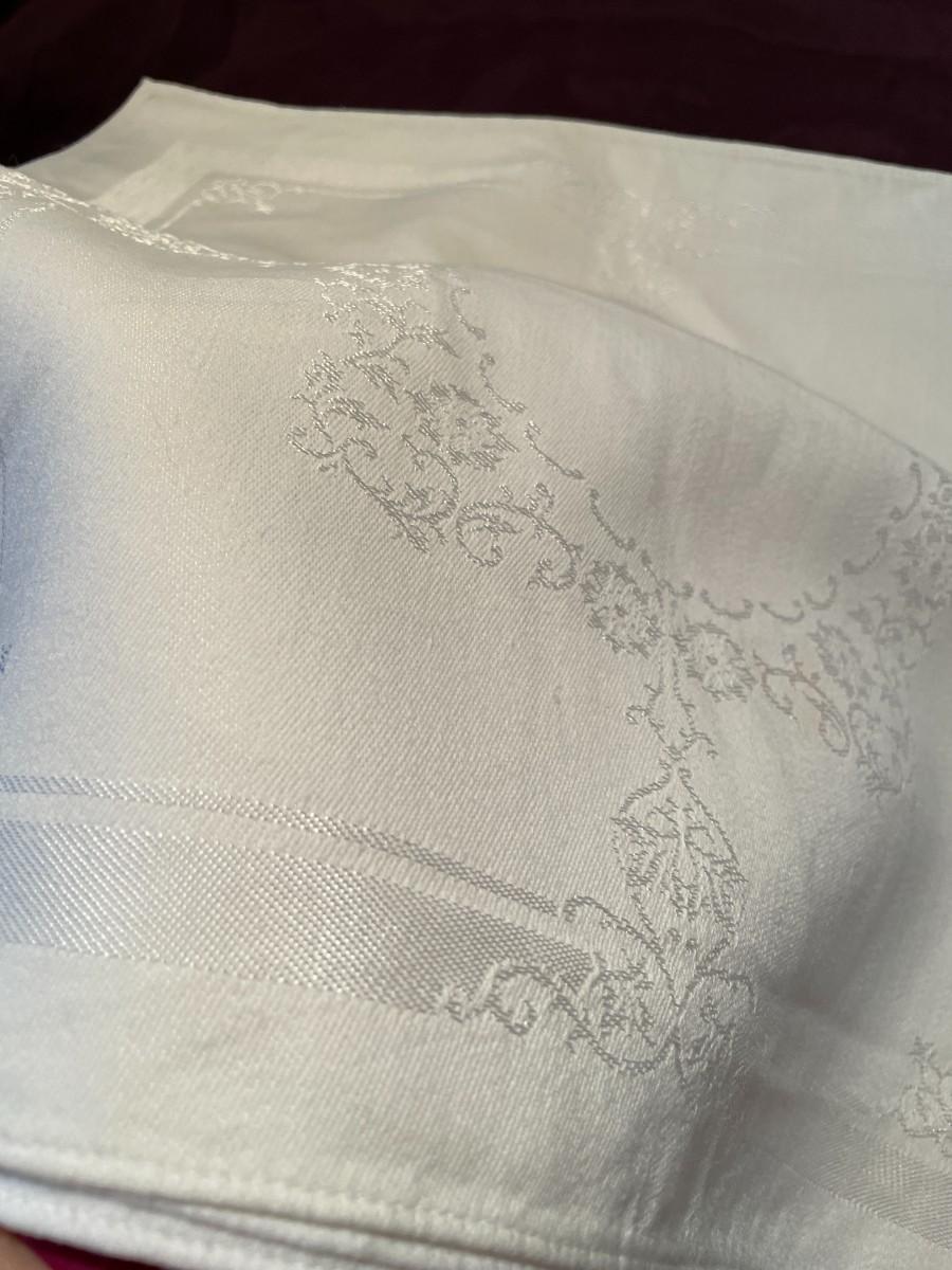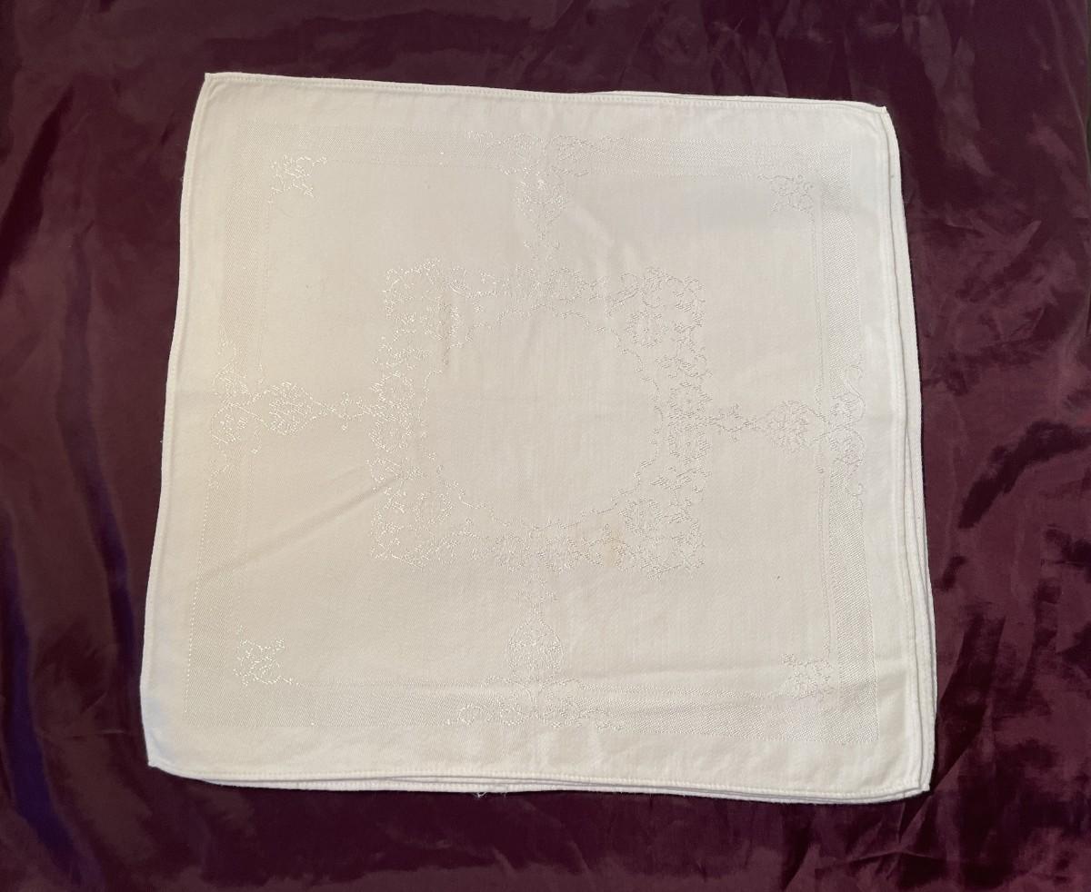 These are very nice linen napkins with a light pattern on them. There are 8 in this set and they measure about 13.5 inches by 14 inches and very clean.