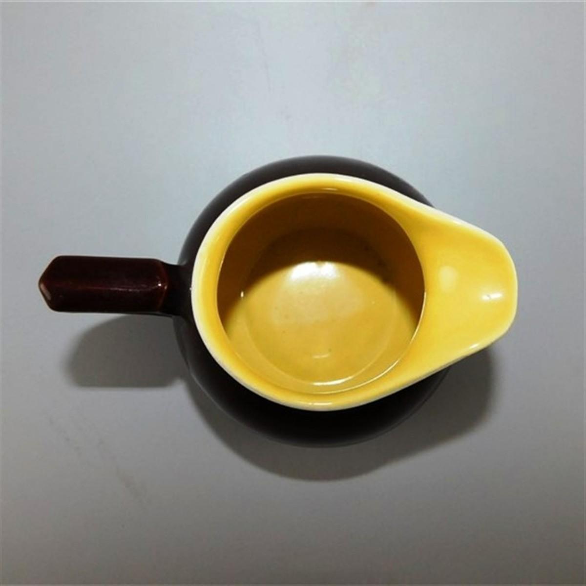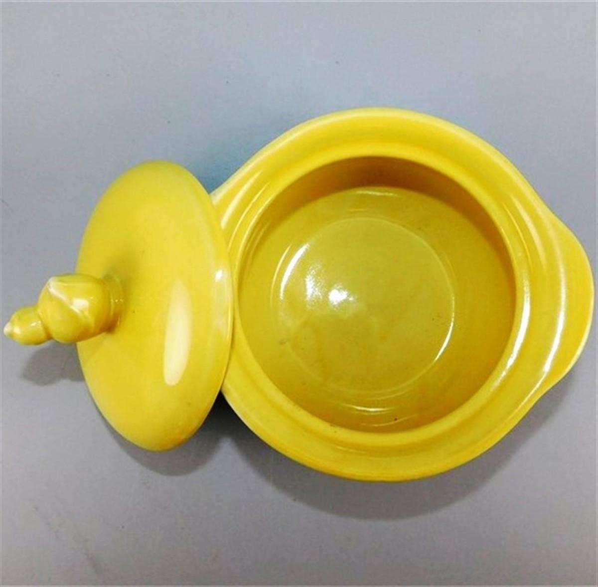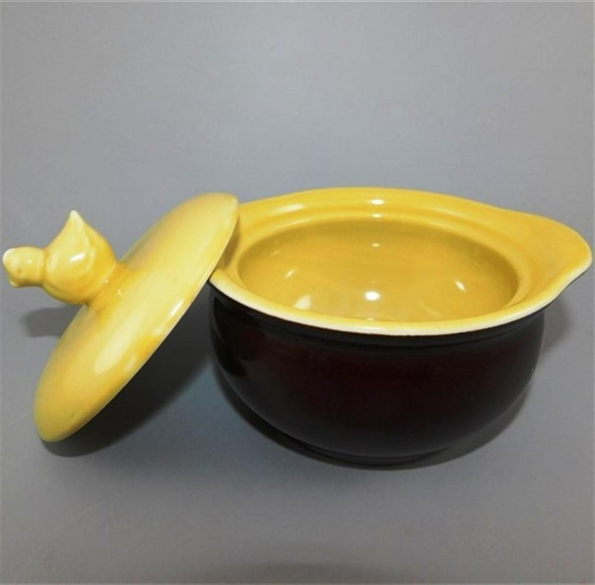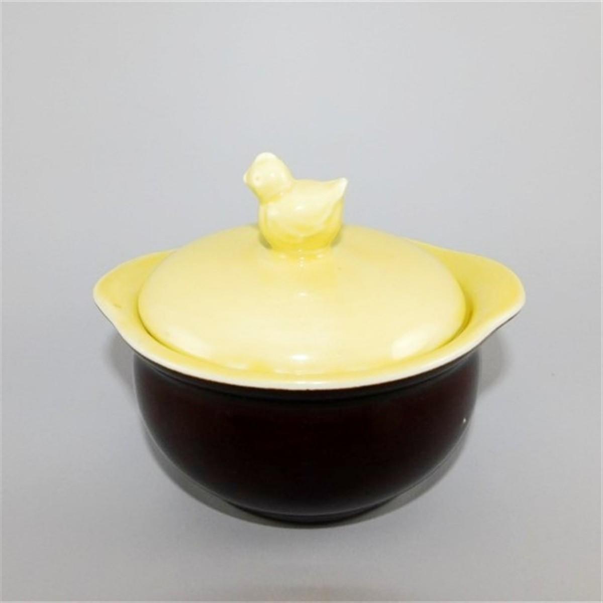 8 Lot of 2 - Hall Bright Yellow and Brown Pottery Creamer and Condiment Jar with Chick on Lid