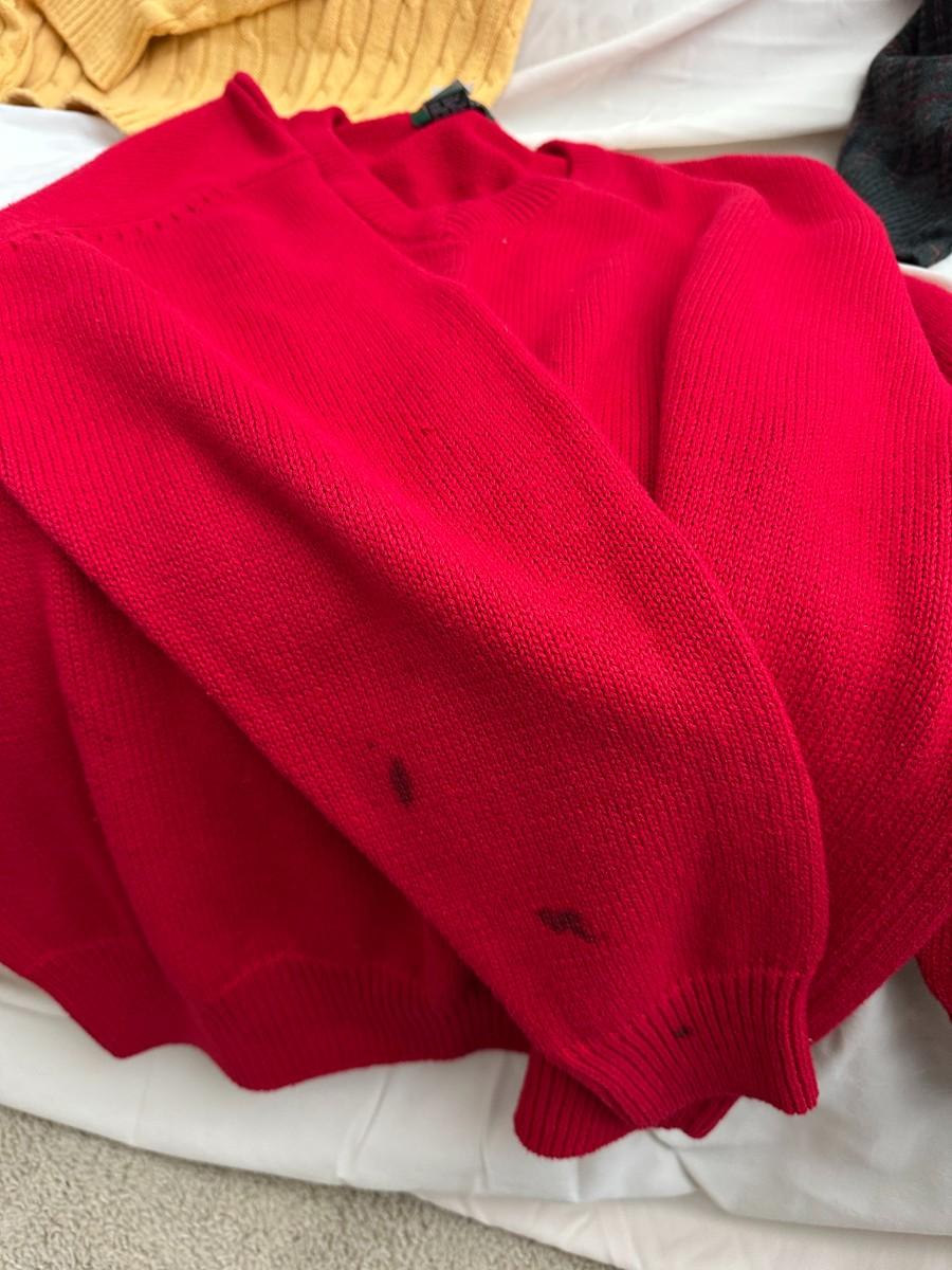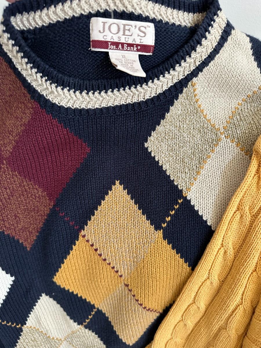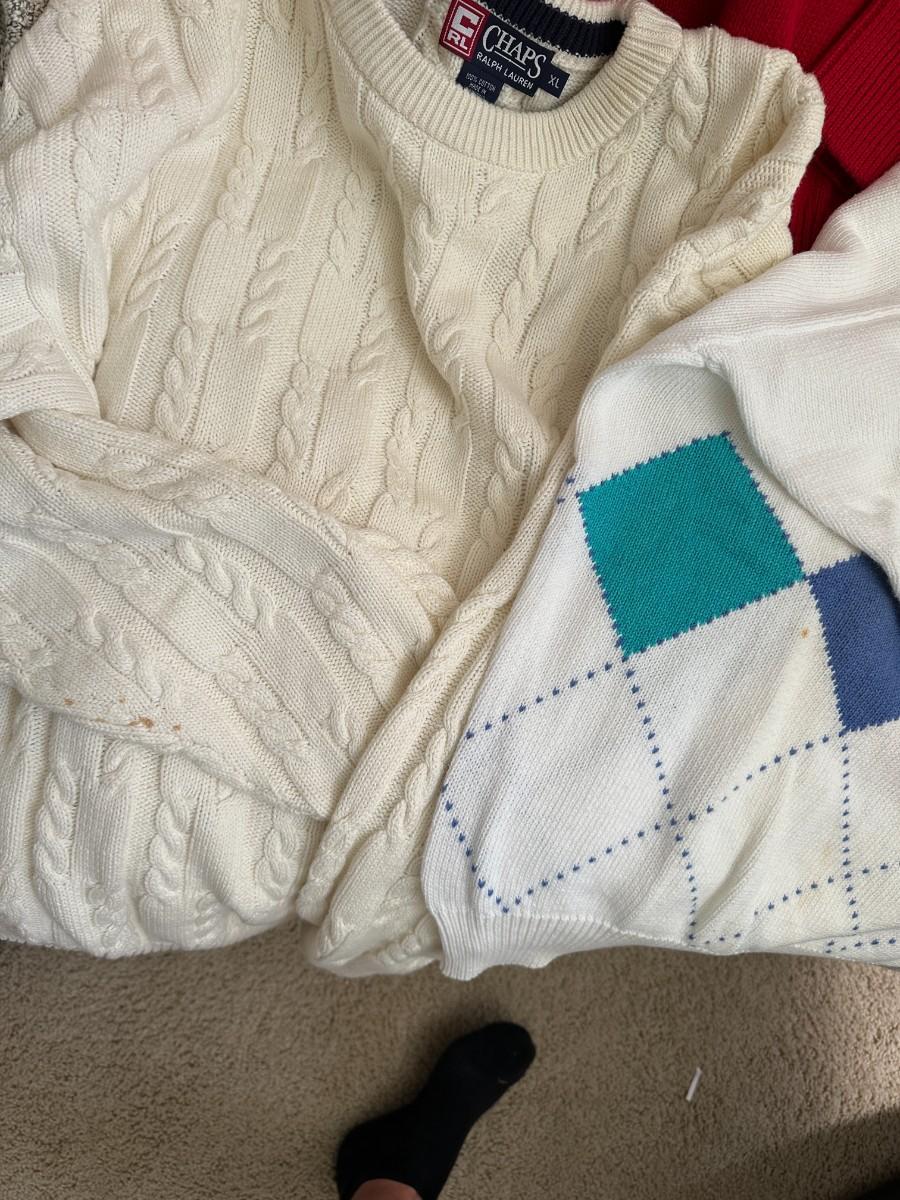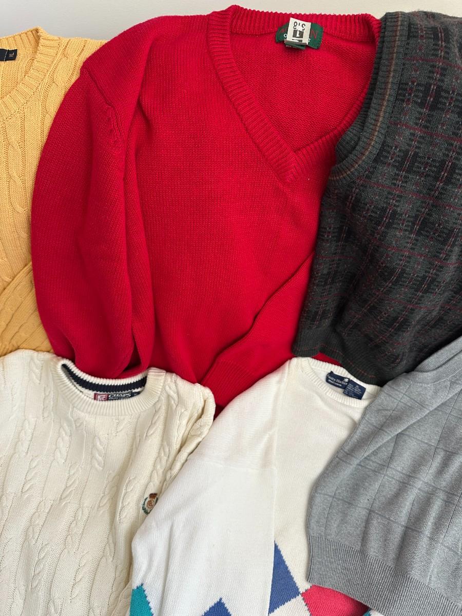 Brands: Chaps, Roundtree & Yorke, Stanley Blacker, American Outpost, Joe's Casual/Jos A Bank, Brooks Brothers, Murano & Saddlebred Vests. 3 have slight stains (red one shown is worst stain).