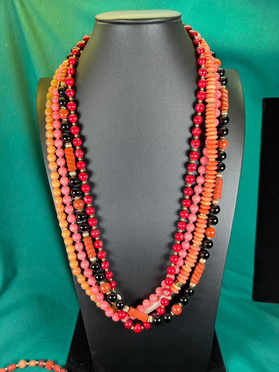 stone and glass beads, 2 18" 1 22" 4 28" and 1 30 "
