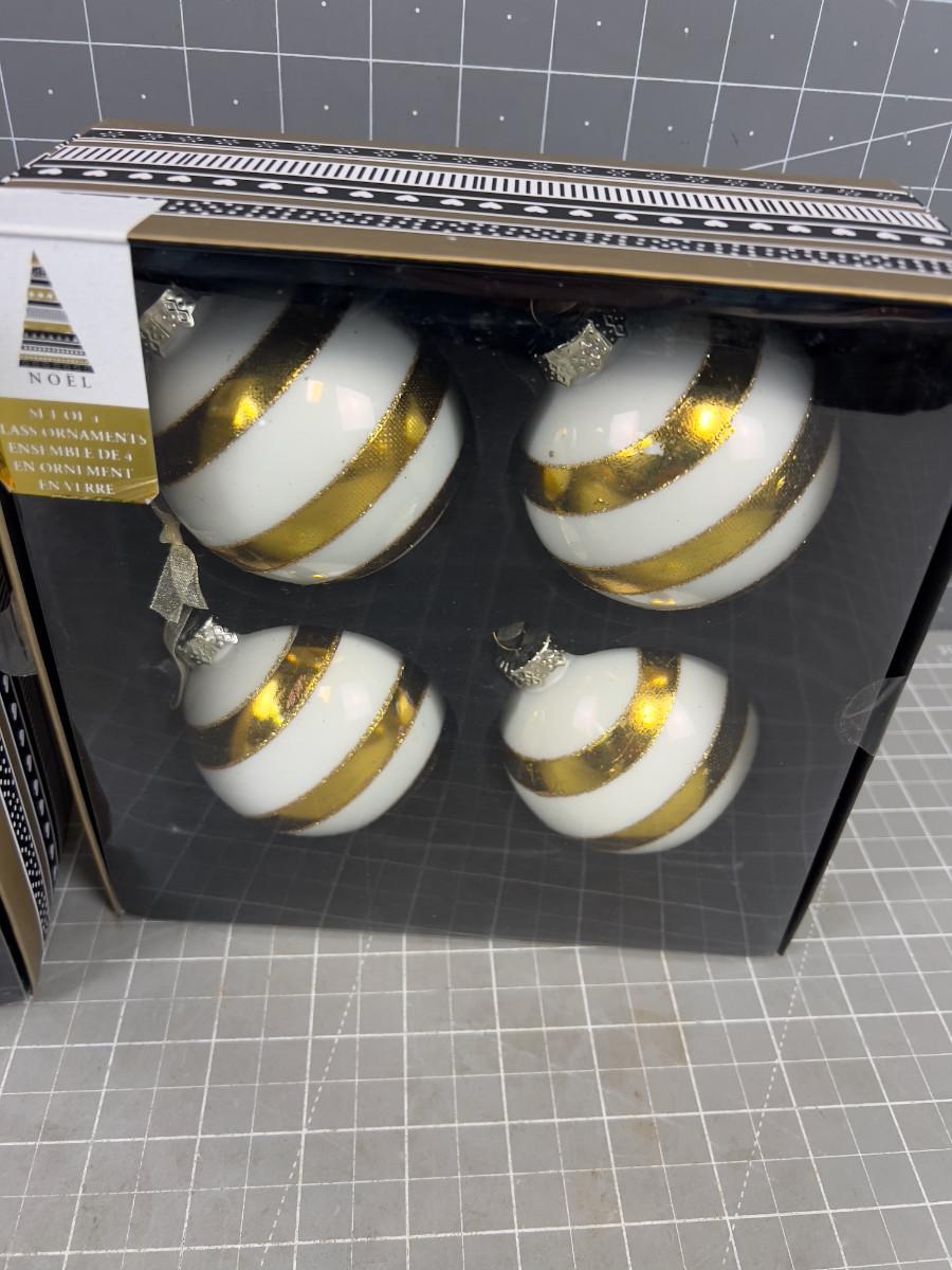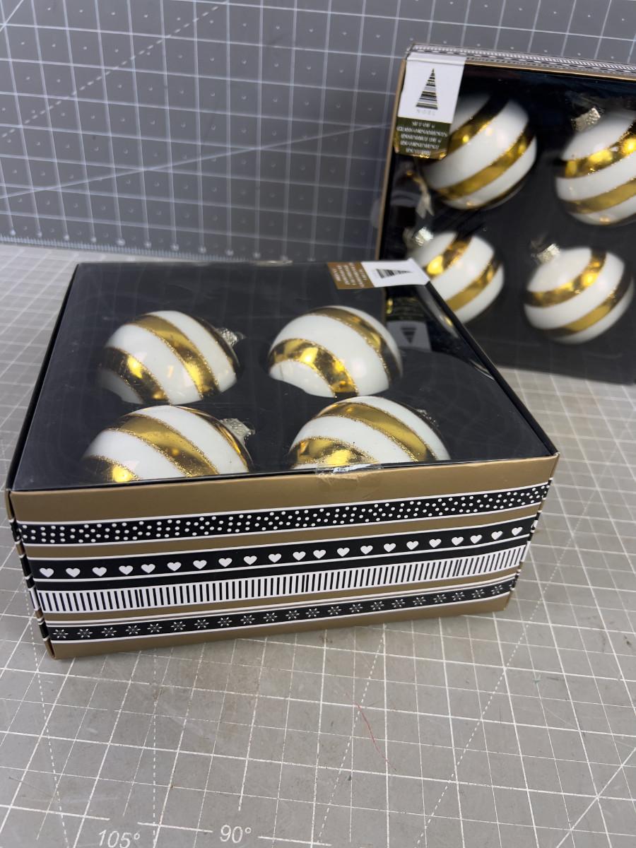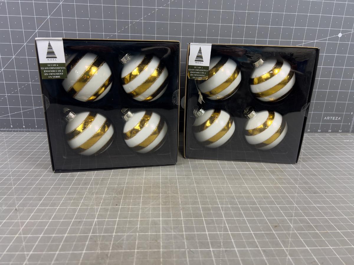 (8) New Gold and White Glass Ornament New in 2 Boxes Total 8