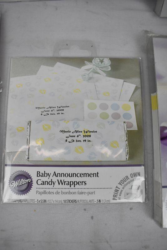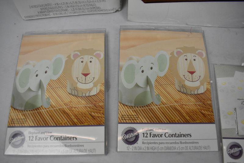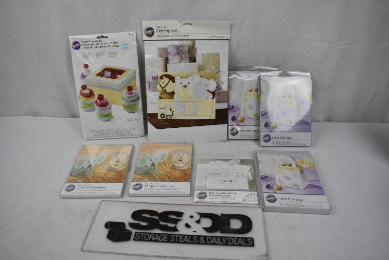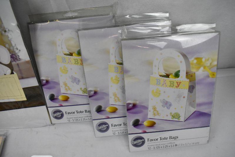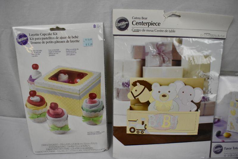 8 packages Wilton Brand Baby Shower Gender Neutral Favor Boxes, Favor Tote Bags, Cupcake Kit, and Centerpiece - New
