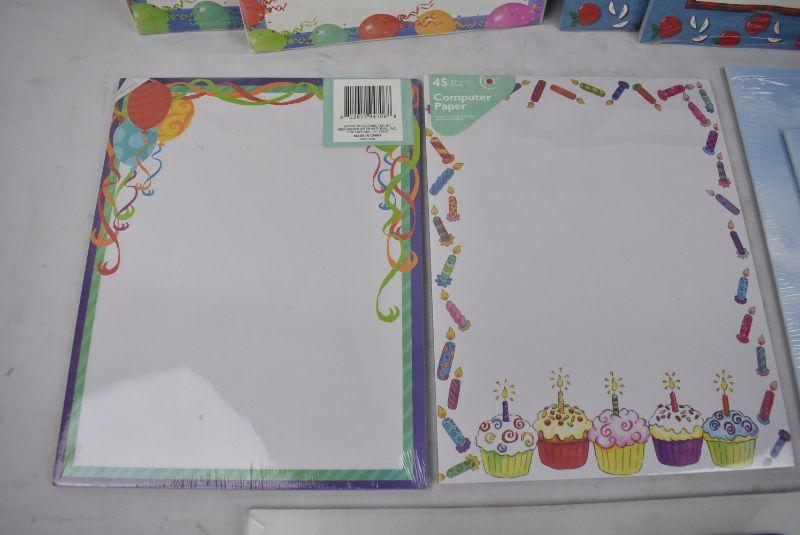 8 packages Decorative Computer Paper: Balloons, APples, Cupcakes, Sky