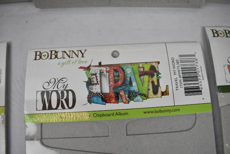 8 pc Bo Bunny 6x12 My Word Chipboard Albums: 5 Home, 1 Love, 1 Travel, 1 Team - New
