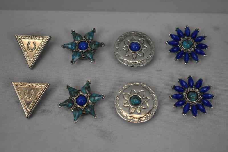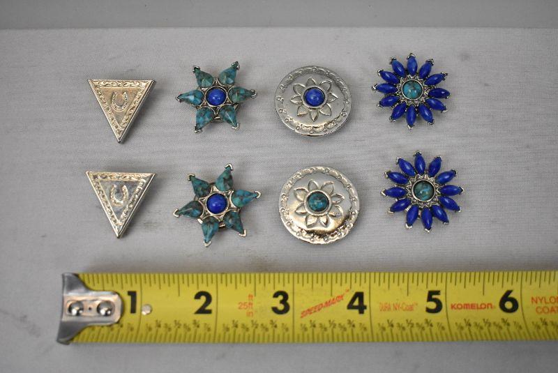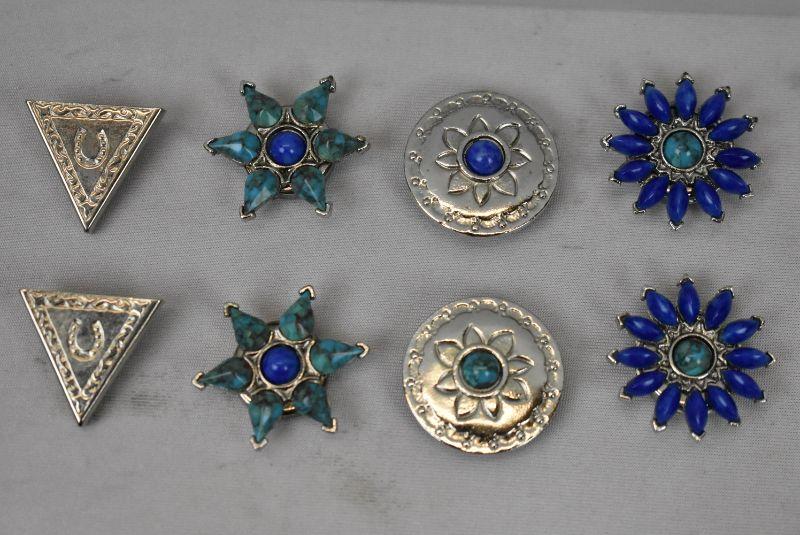 8 pc Button Covers, Silver, Blue & Turquoise Colors
