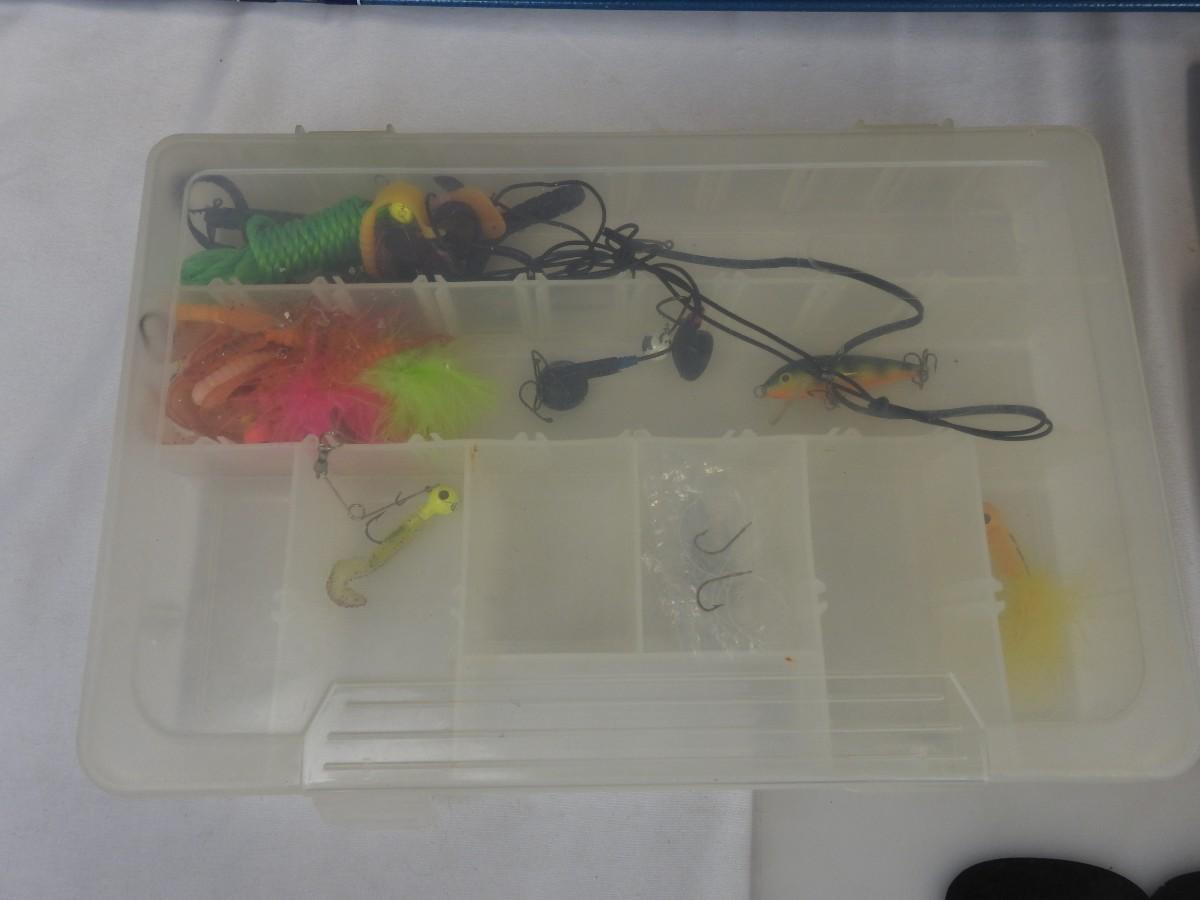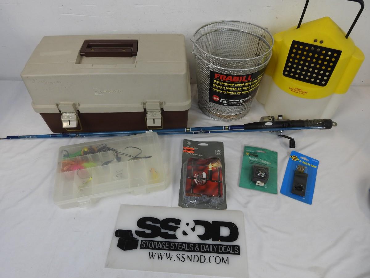 8 pc Camping/Fishing, Fishing Rod, Plano Tackle Box, Minnow Trap, Live Bait Bucket