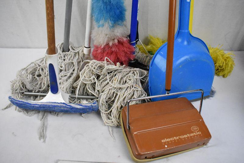8 pc Cleaning Tools: 5 mops, 2 Brooms, 1 Duster