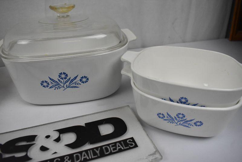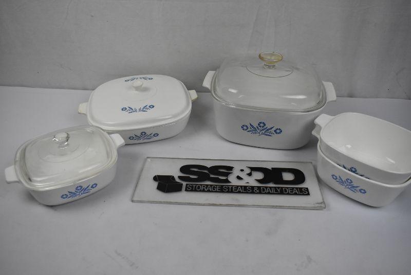 8 pc Corning Ware: 5 pc Baking Bowls plus 3 lids - Vintage