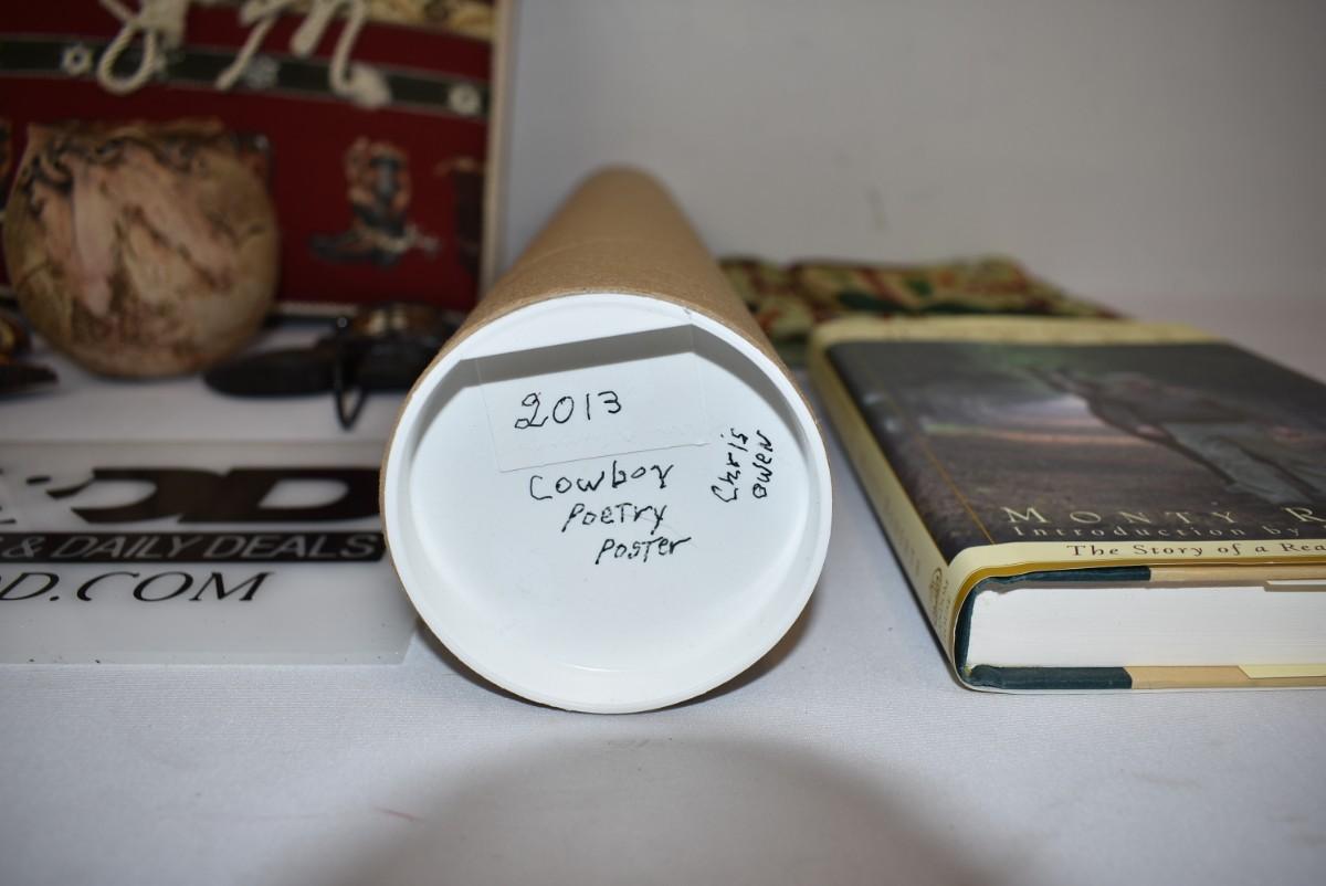 8 pc Cowboys & Horses Lot: Cowboy Poetry Poster, Wall Decor Hooks, Books, etc.
