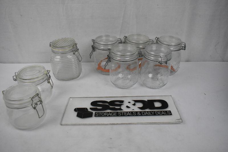 8 pc Glass Canisters with Clasping Lids: 5 Le Parfait 1 Beehive 2 Plain