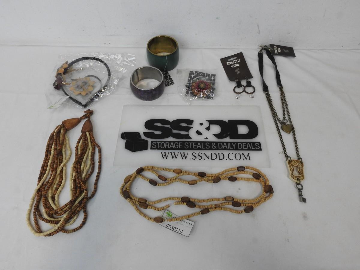 8 pc Jewelry: Headband, Hair Tie, 3 Necklaces, Earrings, 2 Bracelets - New