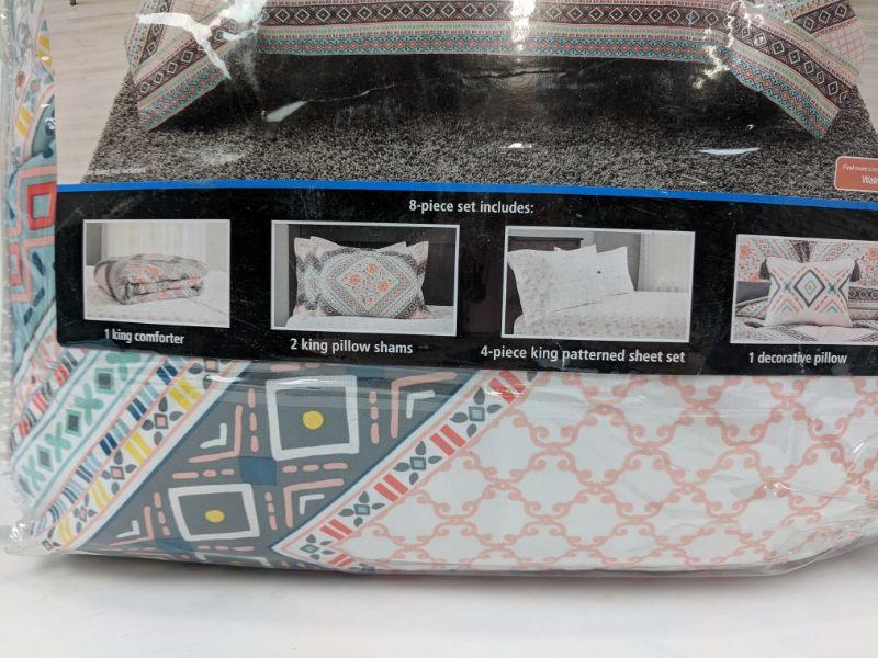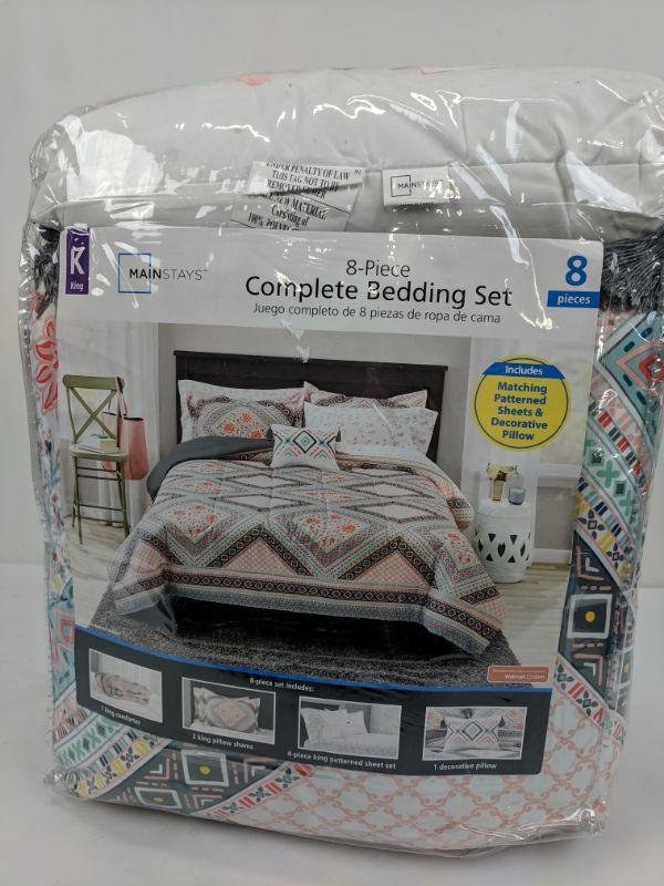 8 PC King Bedding Set, 1 Comforter/2 King Shams/4 PC Sheets/1 Décor Pillow - New