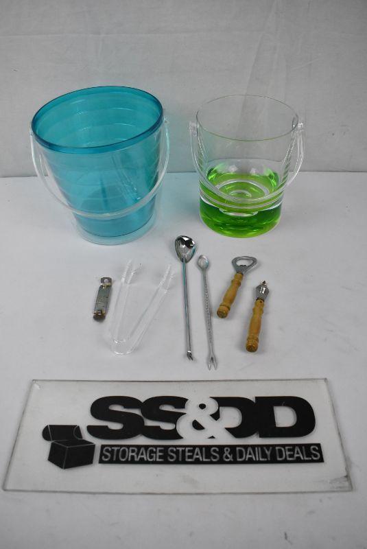 8 pc Kitchen: 2 Plastic ice buckets, plus accessories