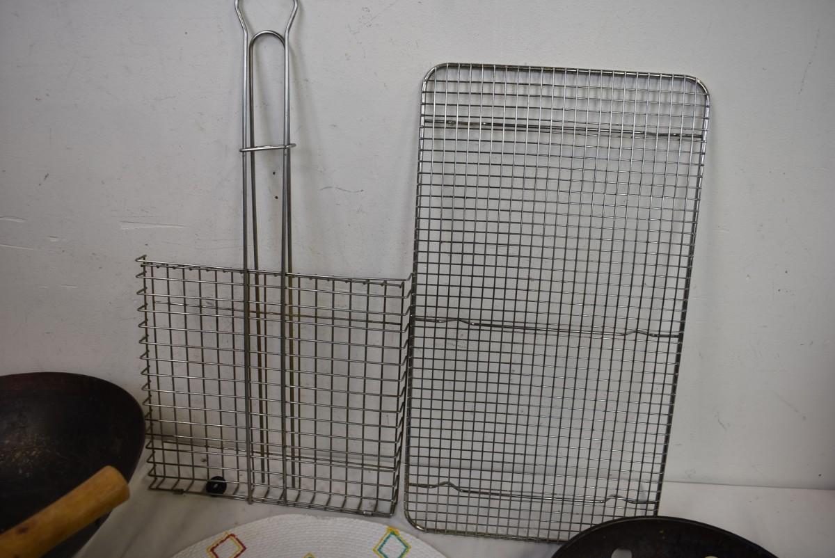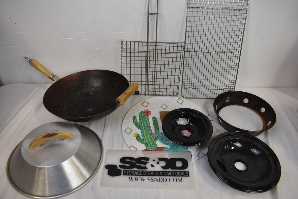 8 pc Kitchen: Braided Placemat, Wok, Cooling Rack