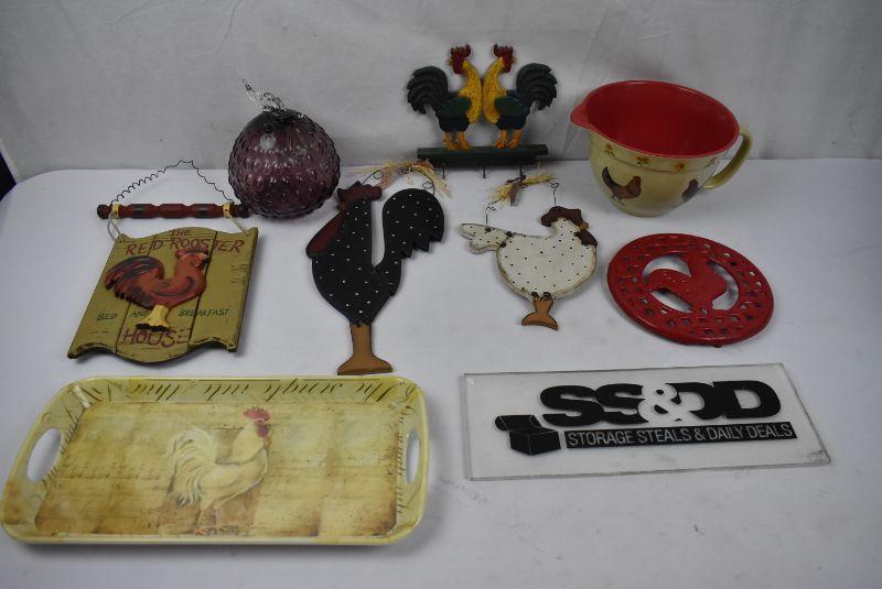 8 pc Kitchen Decor, Rooster & Hen Theme
