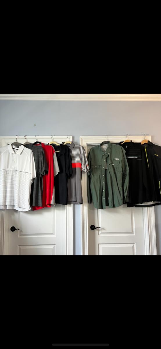 5 shirts - Cutter & Buck and Under Armour. 1 Columbia shirt, 1 Columbia jacket and 1 Under Armour Jacket. In good used condition.