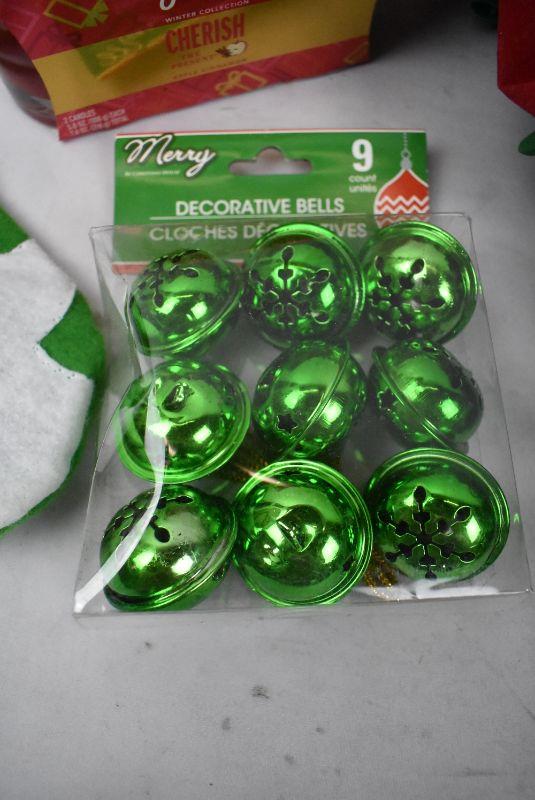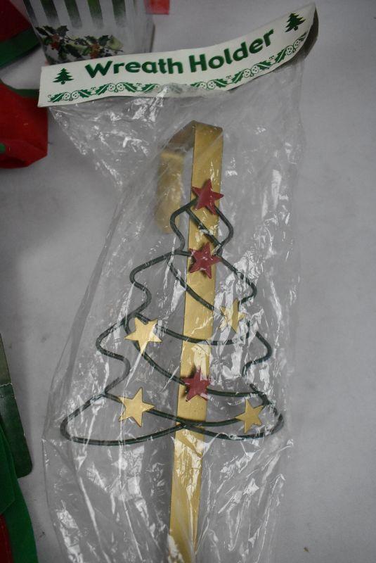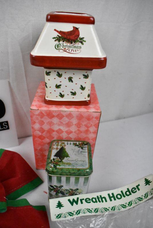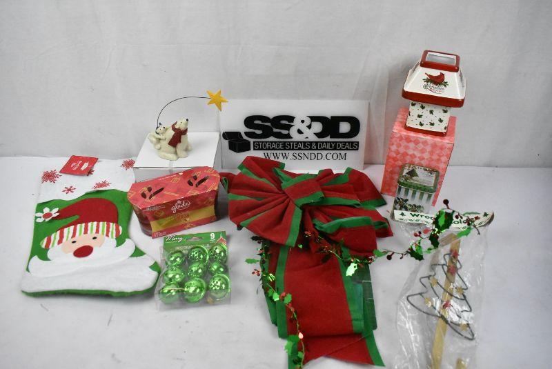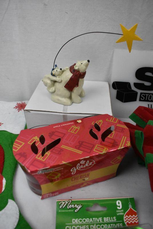 8 pc Misc Christmas Decor: Bears & Star Figurine, Candles, Bells, Wreath Holder, Stocking, etc - New