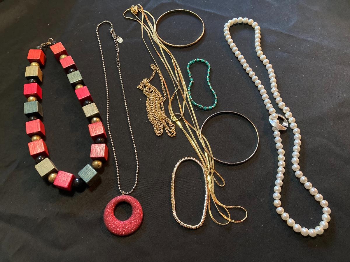 8 pc necklace and bracelet collection with Wood Square Bead necklace and more