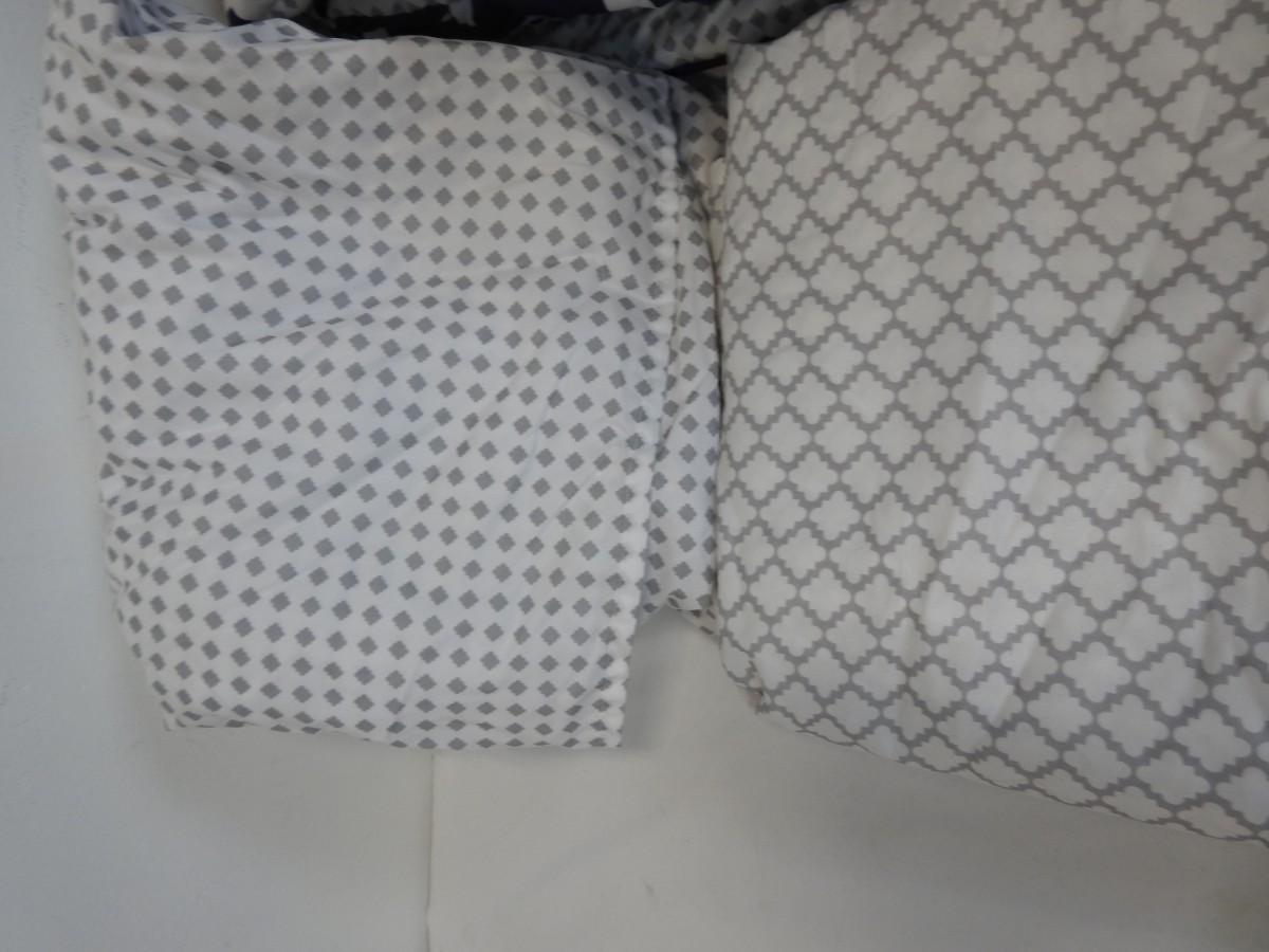 8 pc Queen Bedding Set, Navy/White/Gray: Skirt, Flat Sheet, Fitted Sheet, etc
