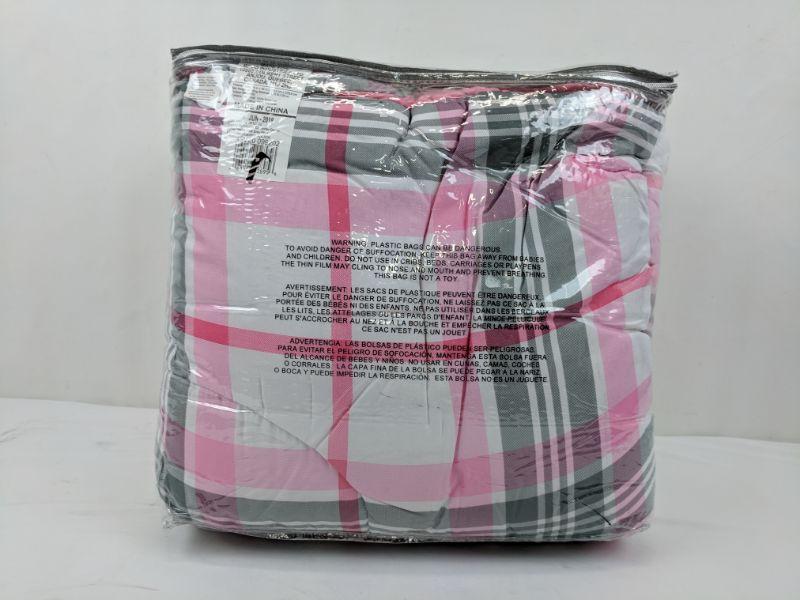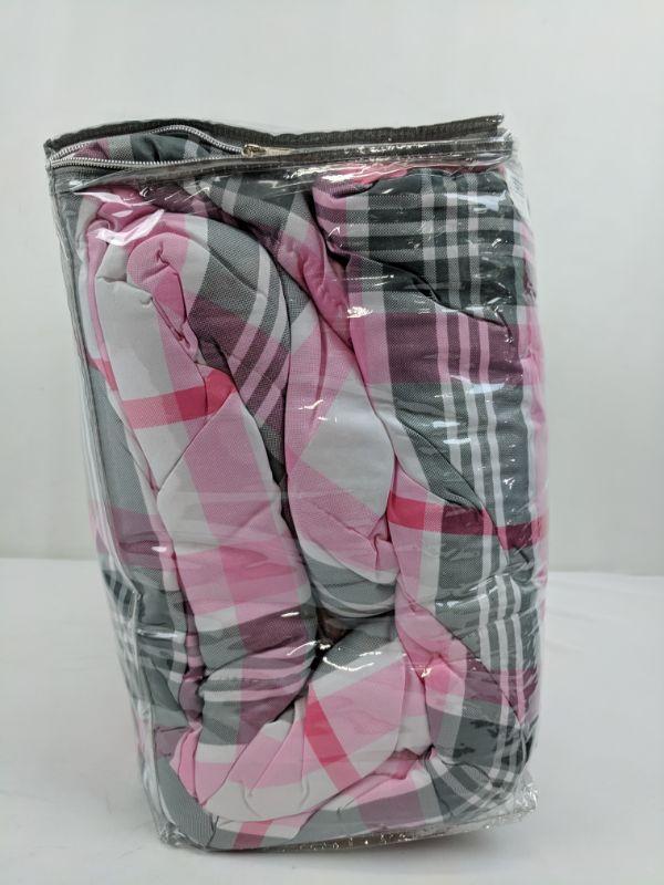 8 PC Queen Pink & Grey Plaid Coordinated Bedding Set - New