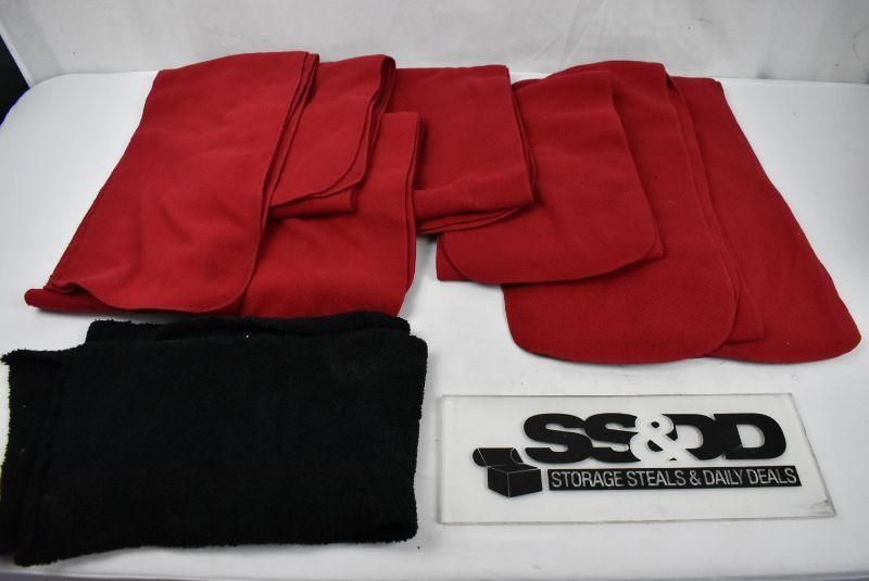 8 pc Scarves: 7 Red Fleece & 1 Black Chenille
